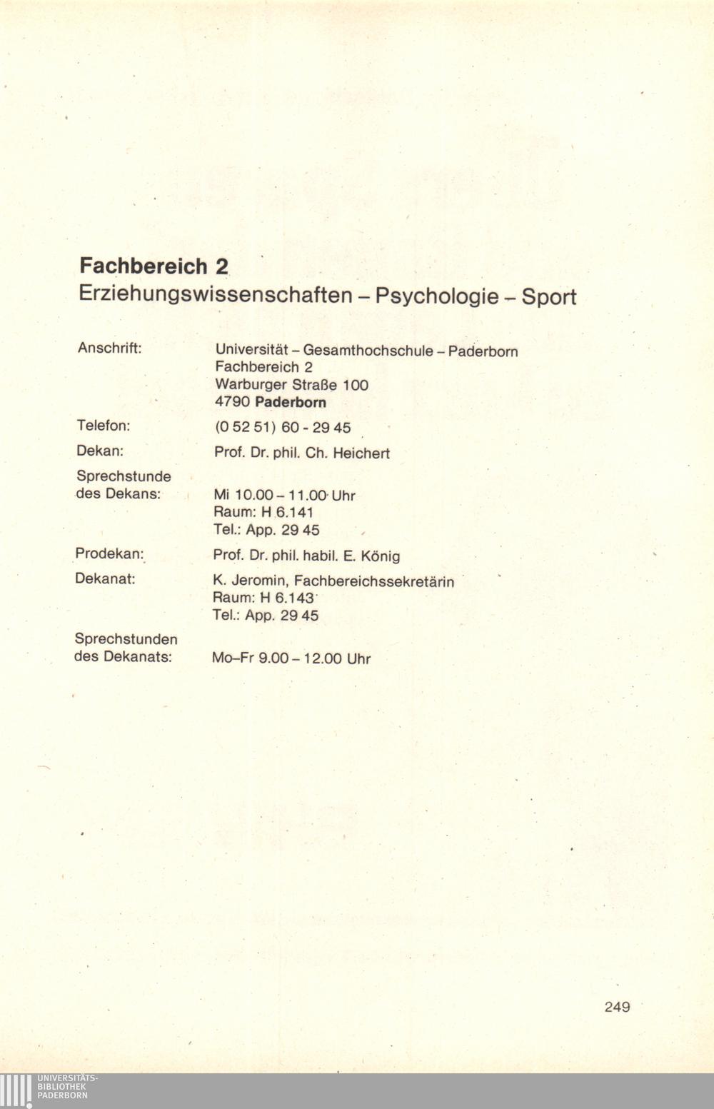 Personal- und Vorlesungsverzeichnis für die Universität Paderborn