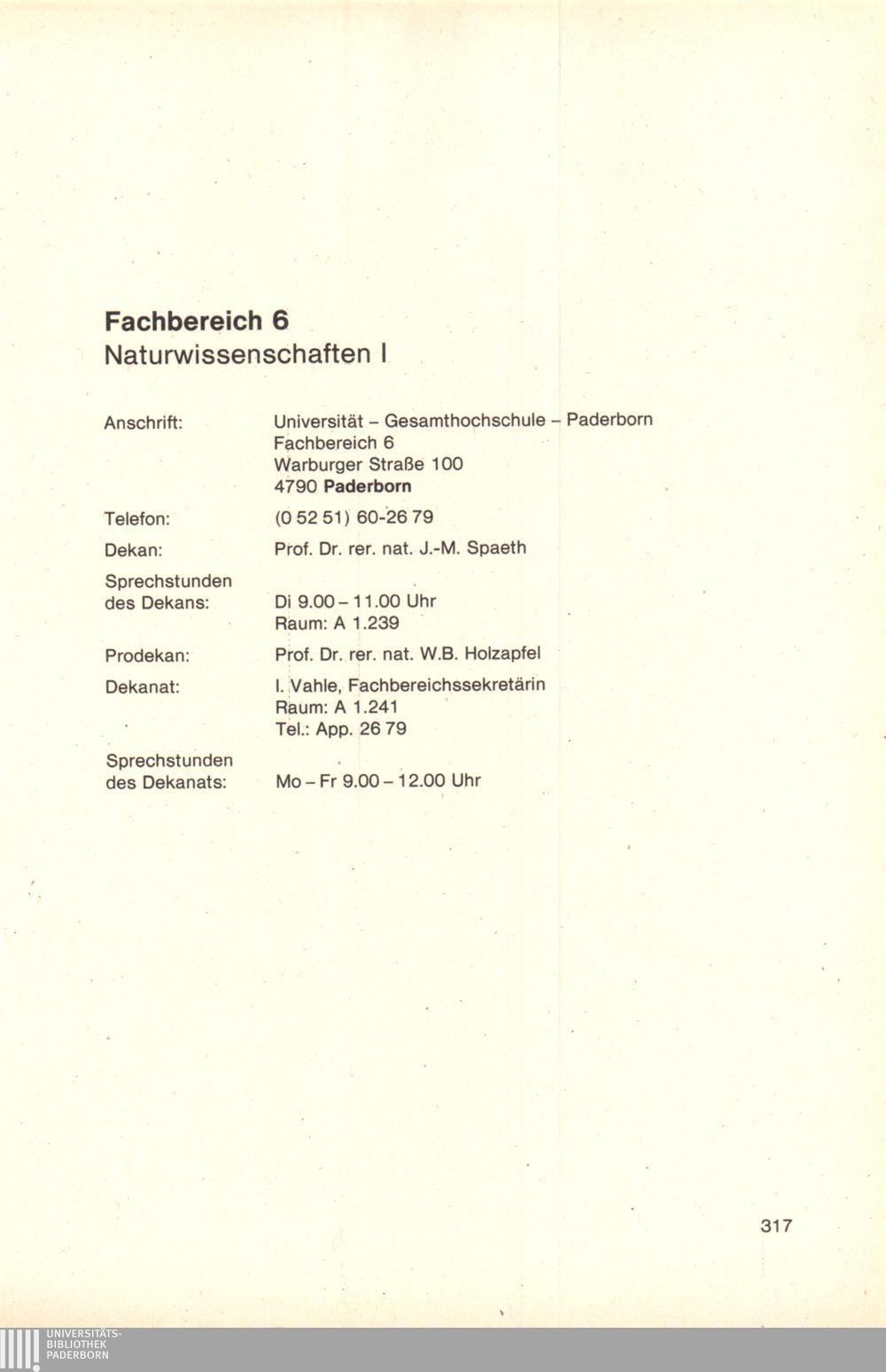 Personal- und Vorlesungsverzeichnis für die Universität Paderborn