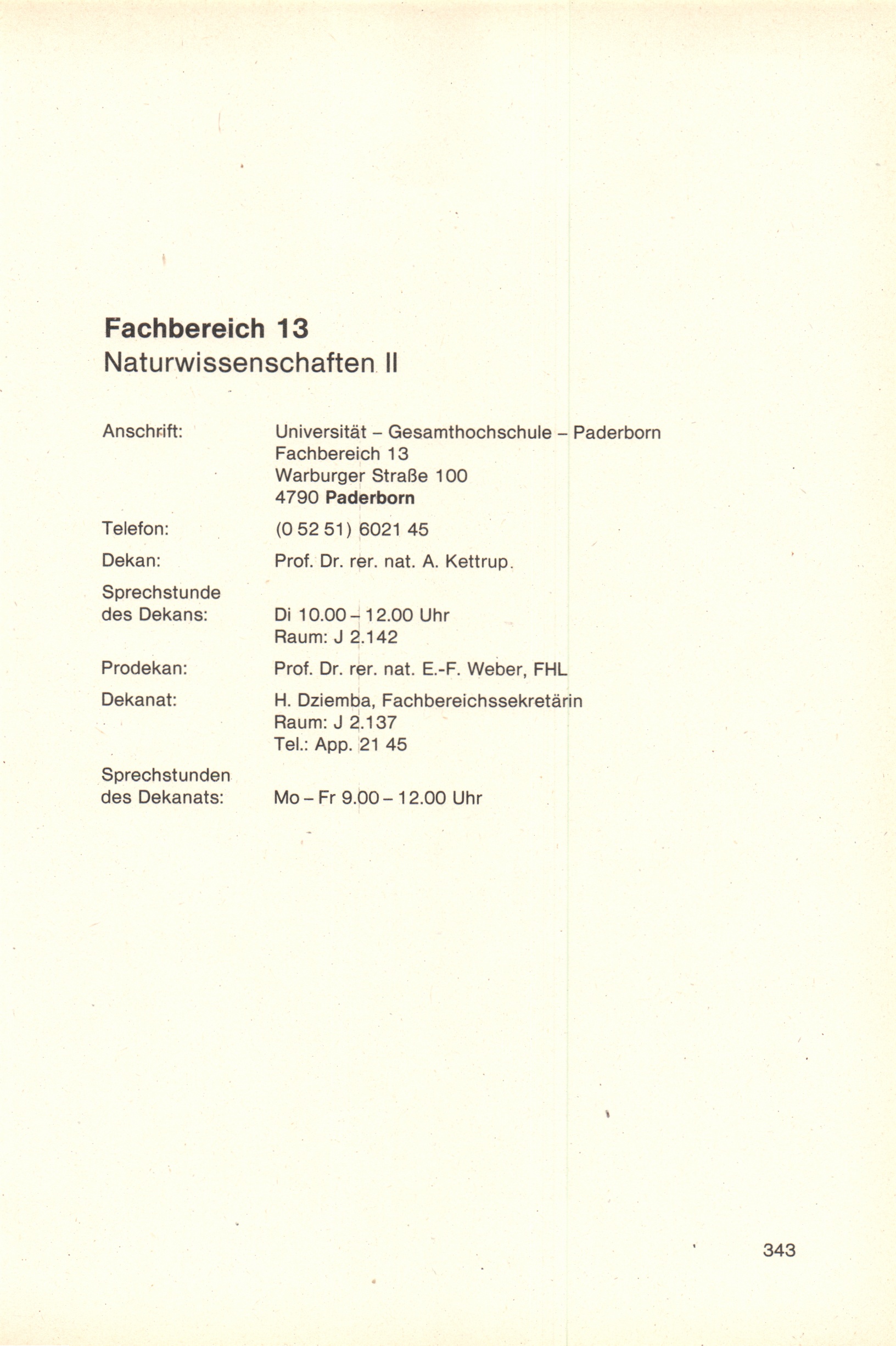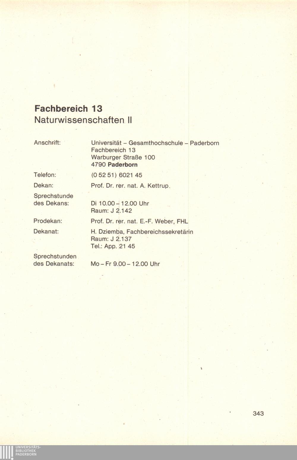 Personal- und Vorlesungsverzeichnis für die Universität Paderborn
