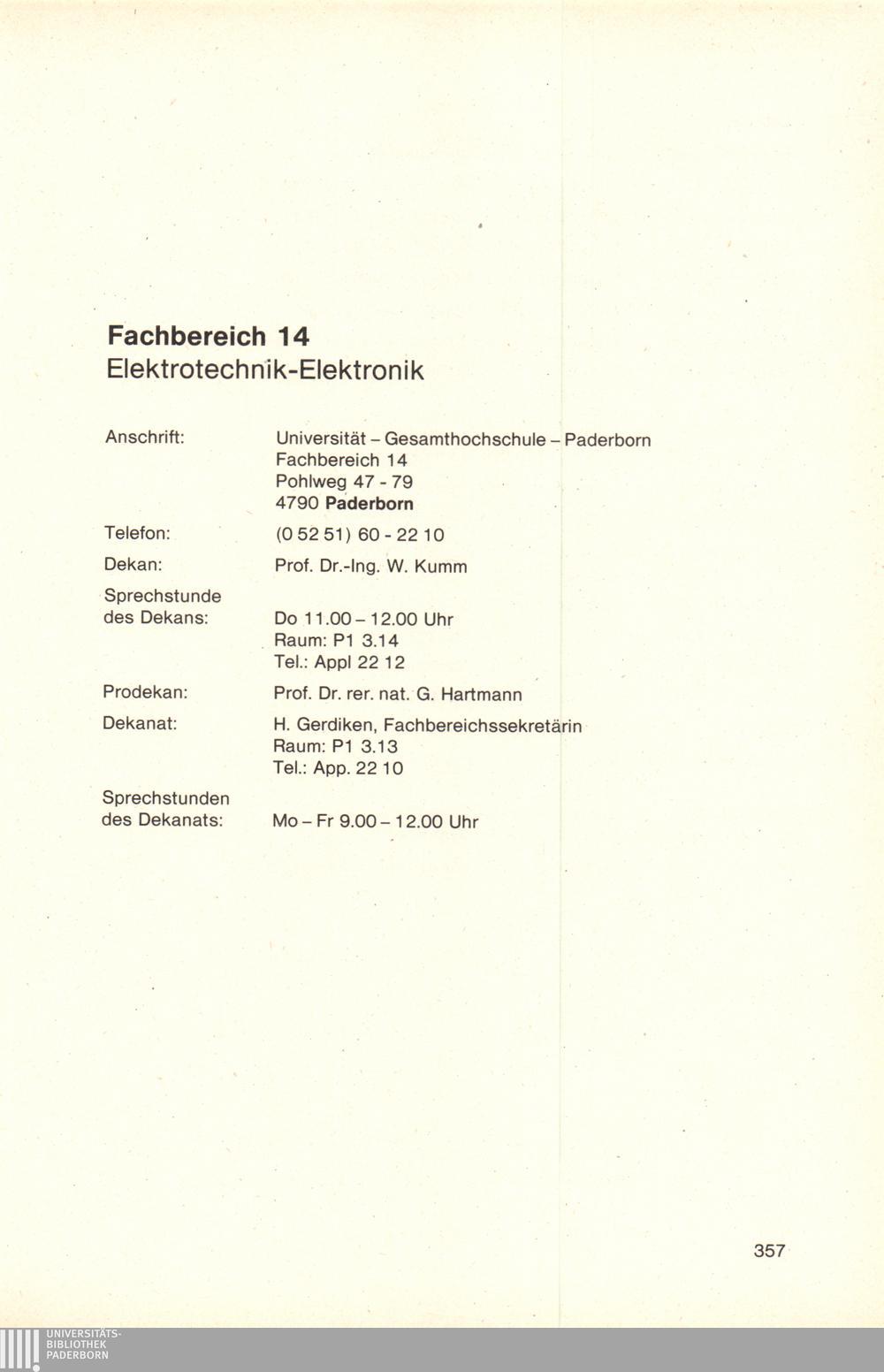 Personal- und Vorlesungsverzeichnis für die Universität Paderborn