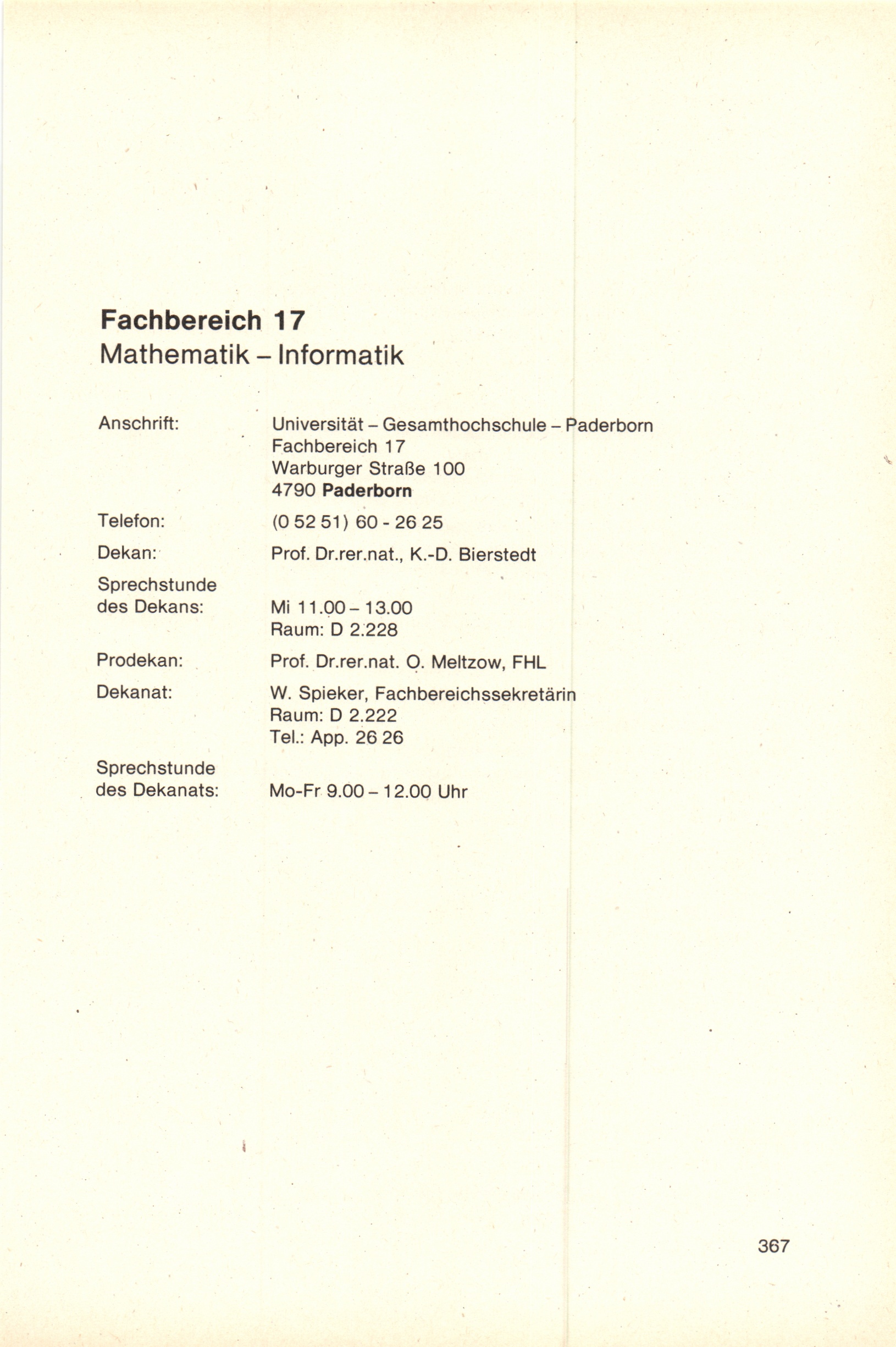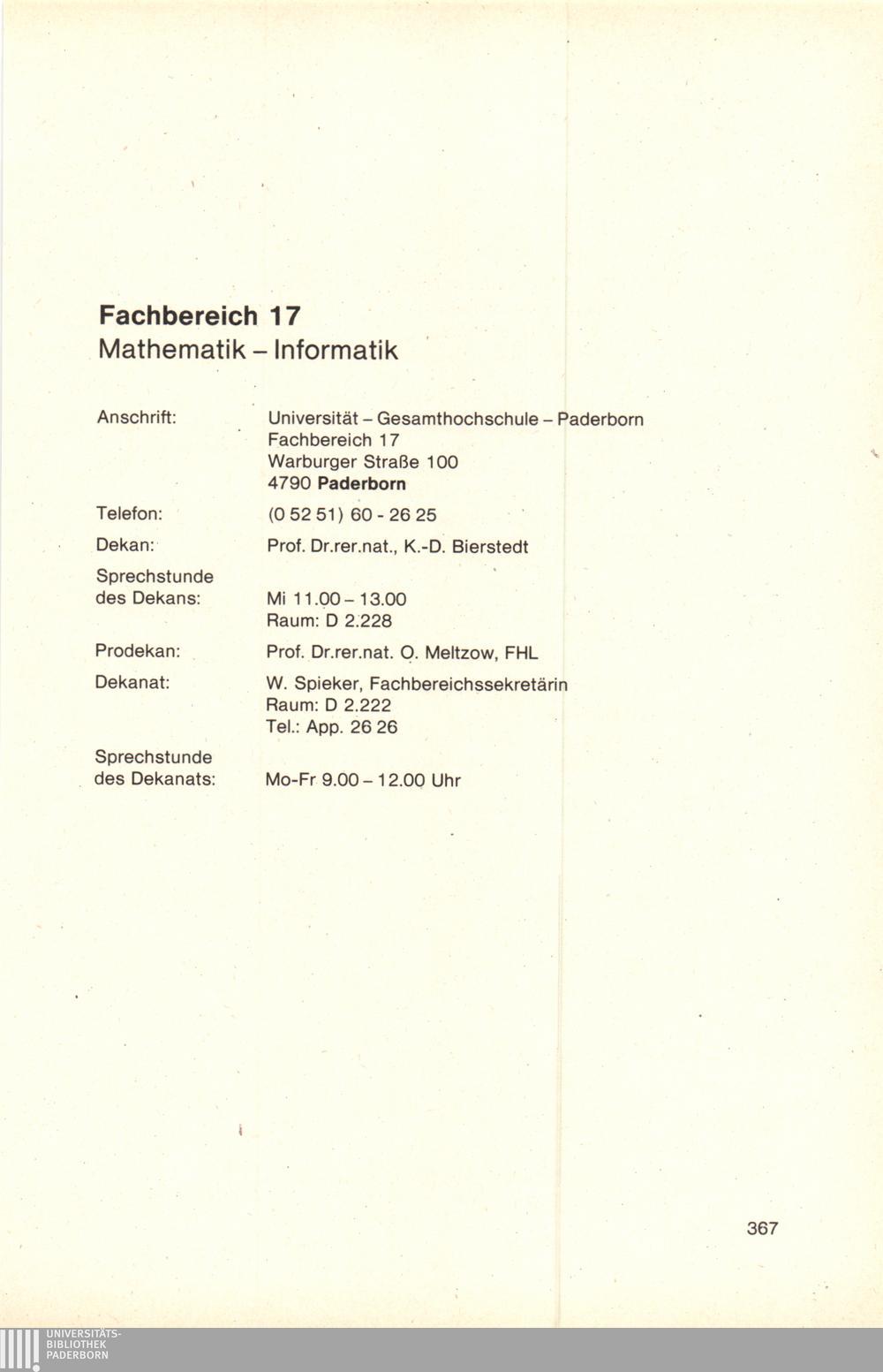 Fachbereich 17: Mathematik - Informatik