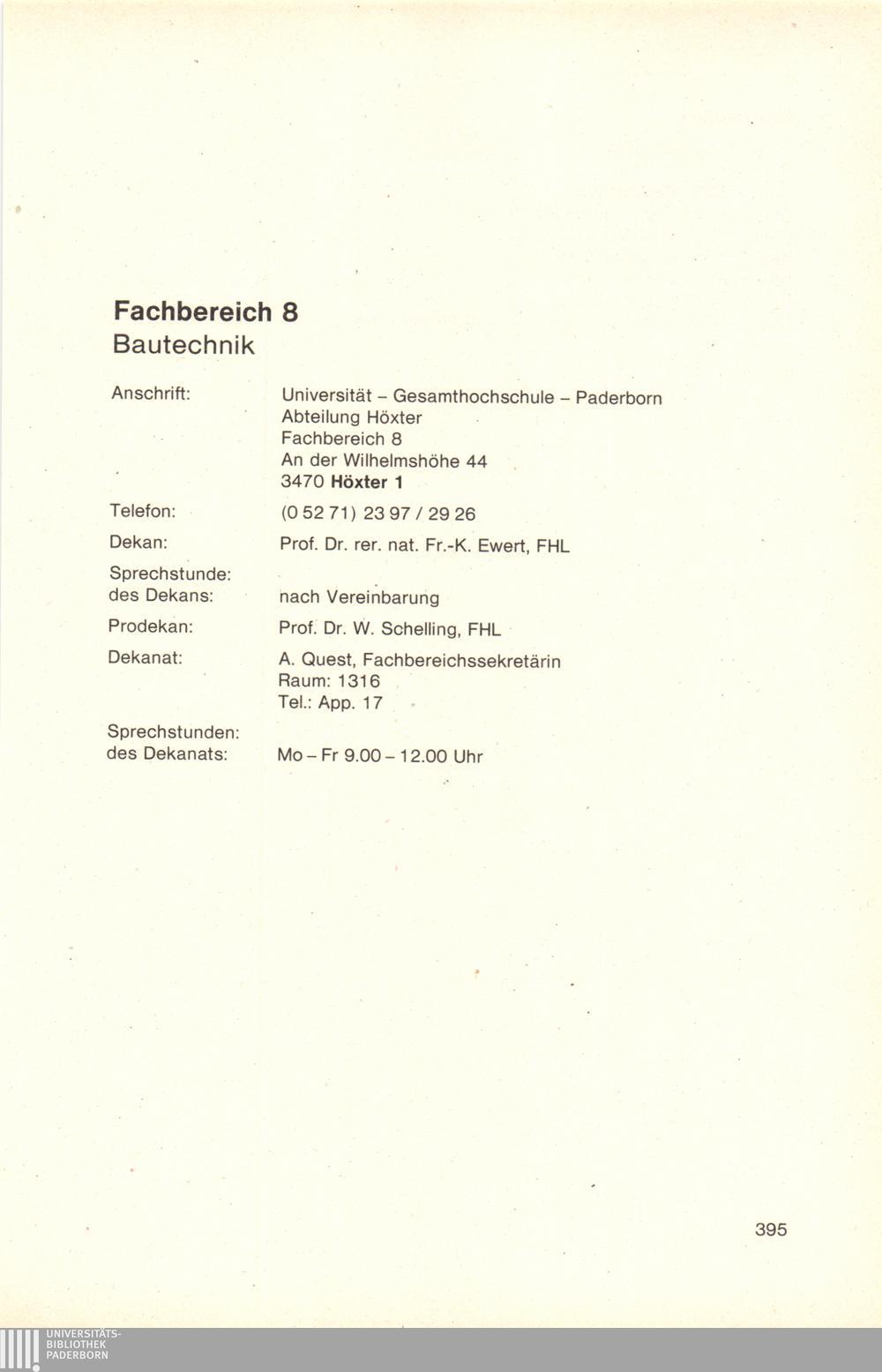 Personal- und Vorlesungsverzeichnis für die Universität Paderborn