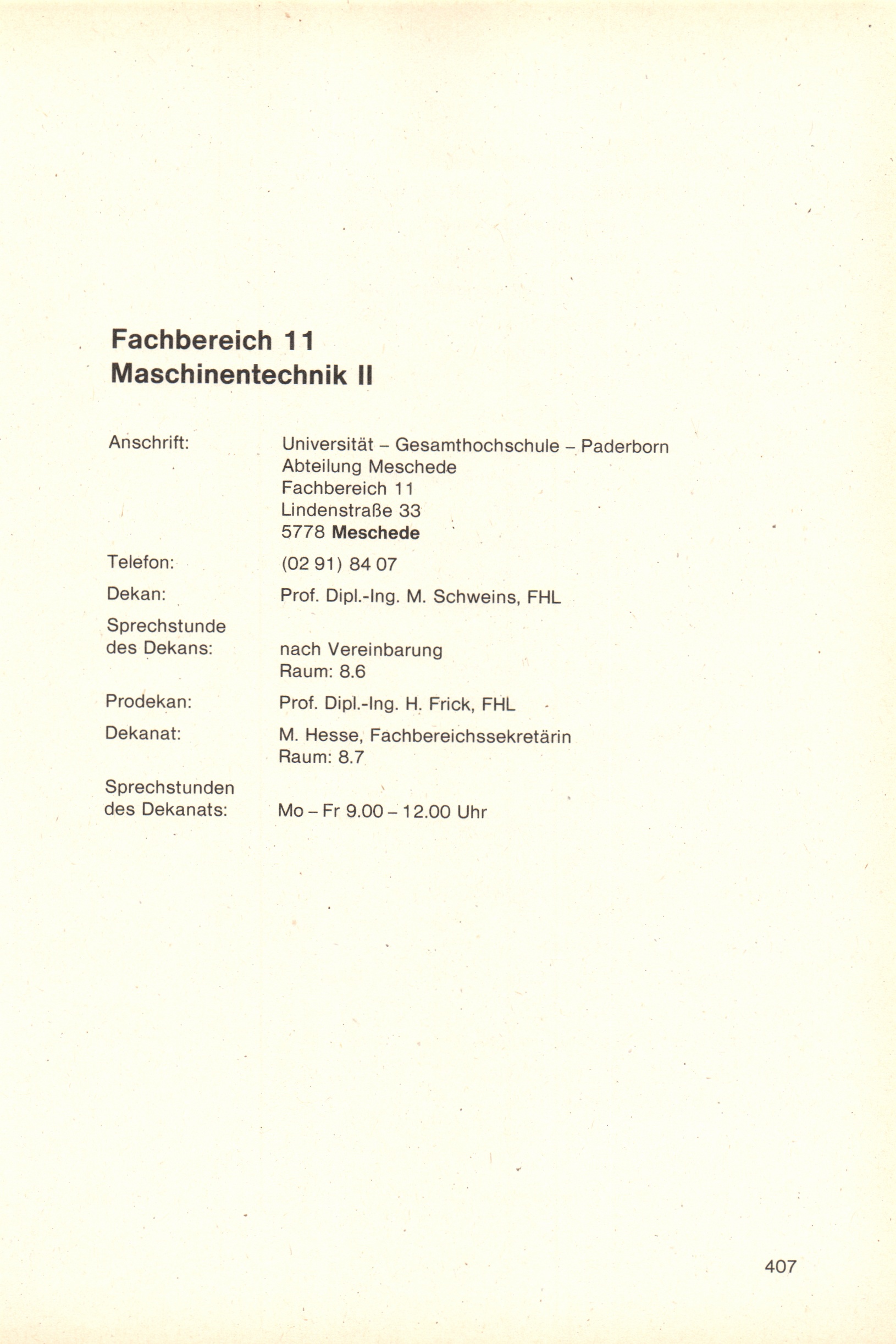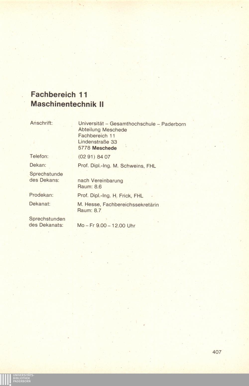 Fachbereich 11: Maschinentechnik II