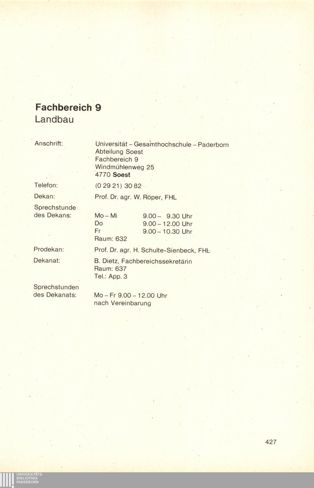 Fachbereich 9: Landbau