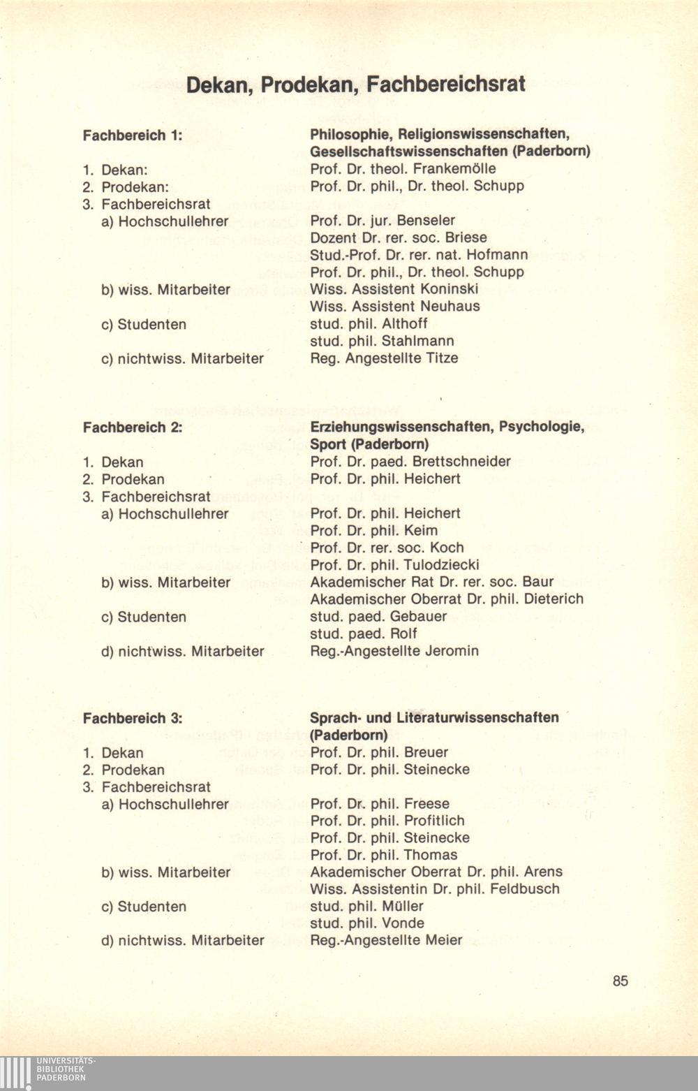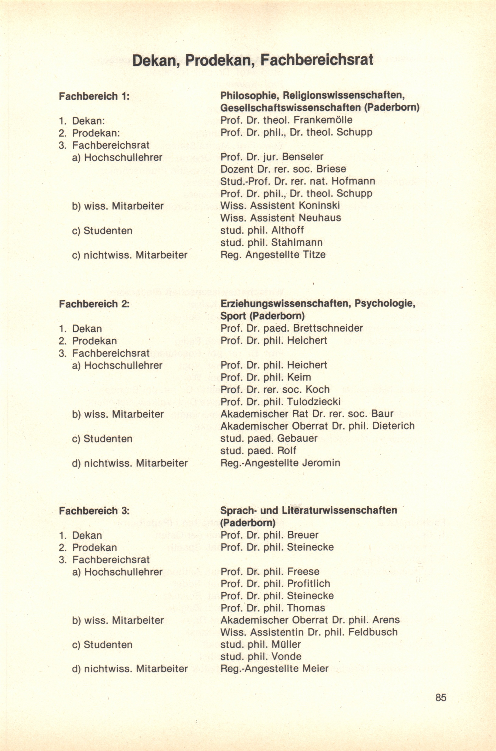 Dekan, Prodekan, Fachbereichsrat, Abteilungsleiter