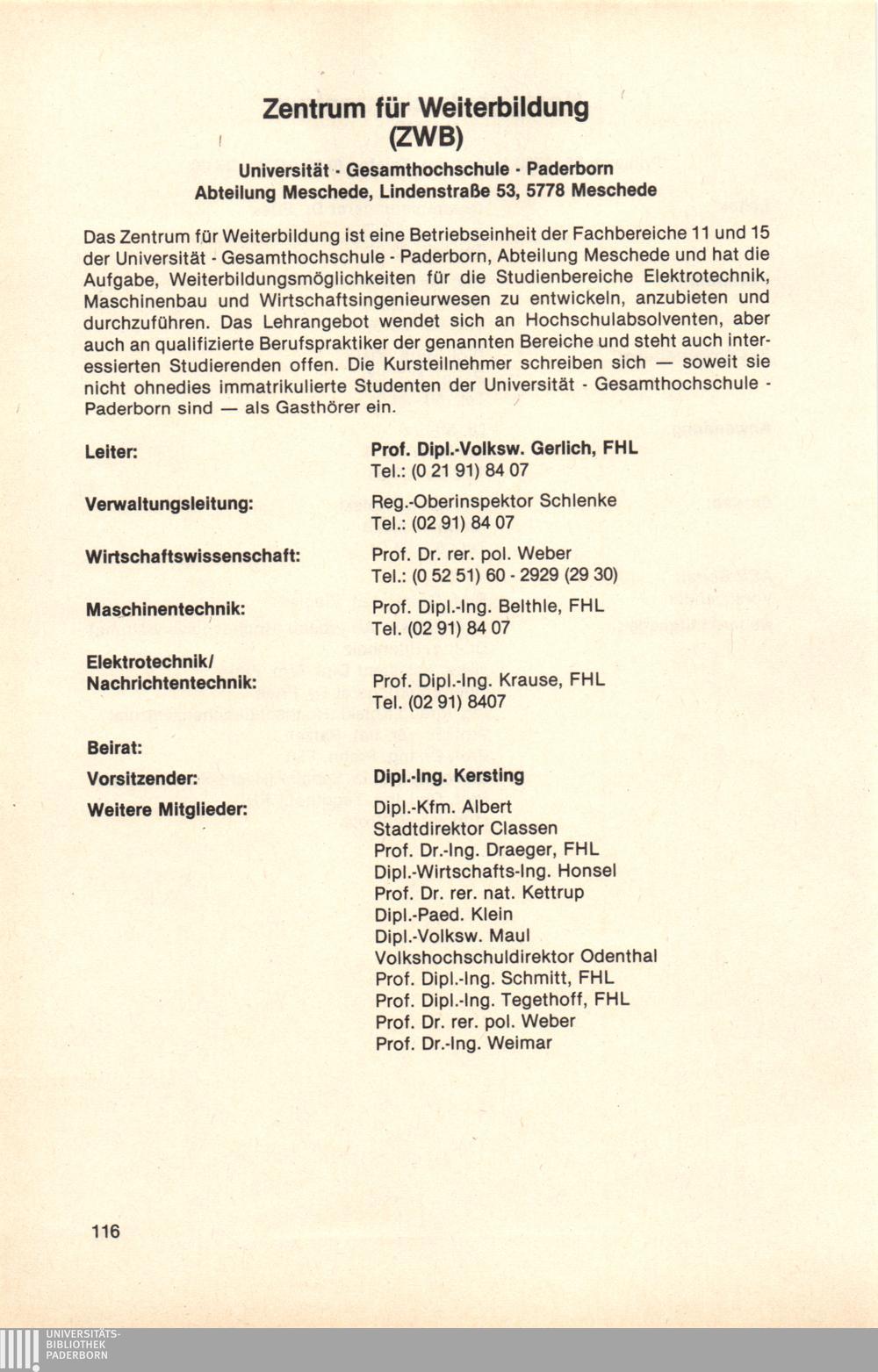 Personal- und Vorlesungsverzeichnis für die Universität Paderborn