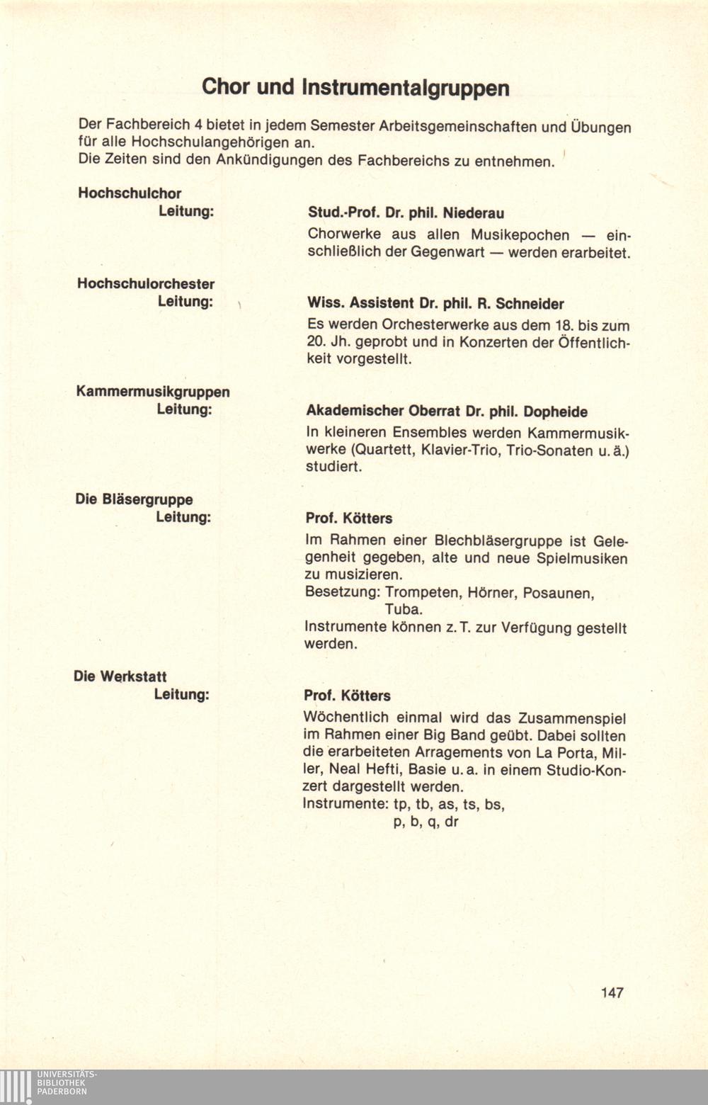 Personal- und Vorlesungsverzeichnis für die Universität Paderborn