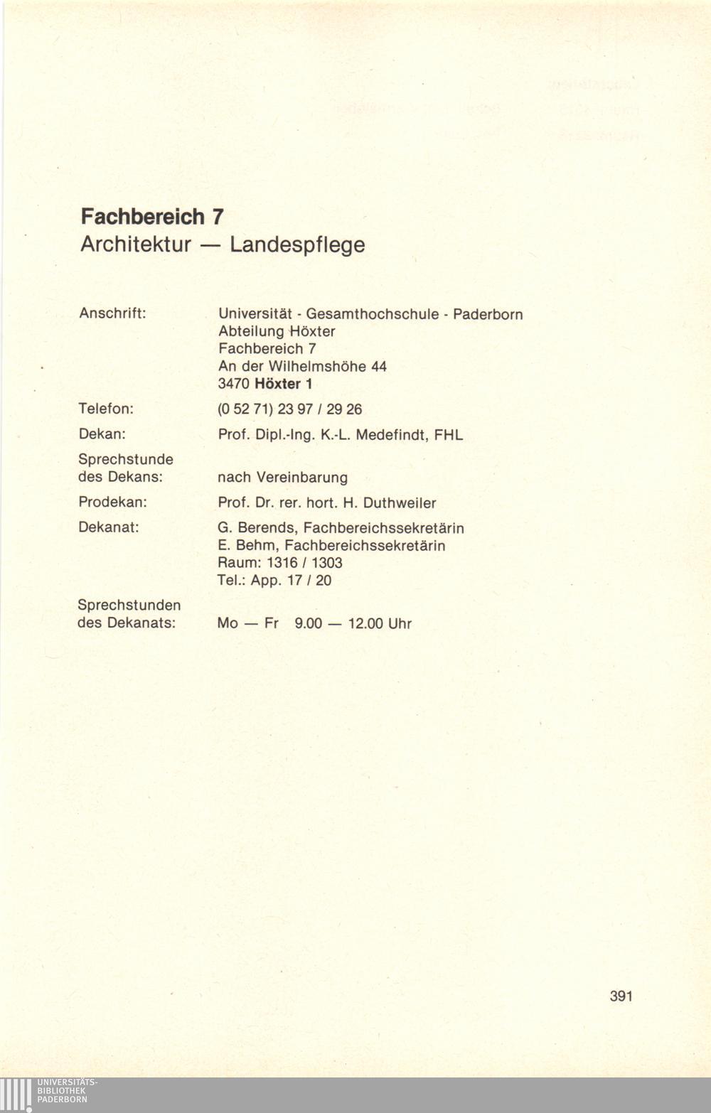 Personal- und Vorlesungsverzeichnis für die Universität Paderborn
