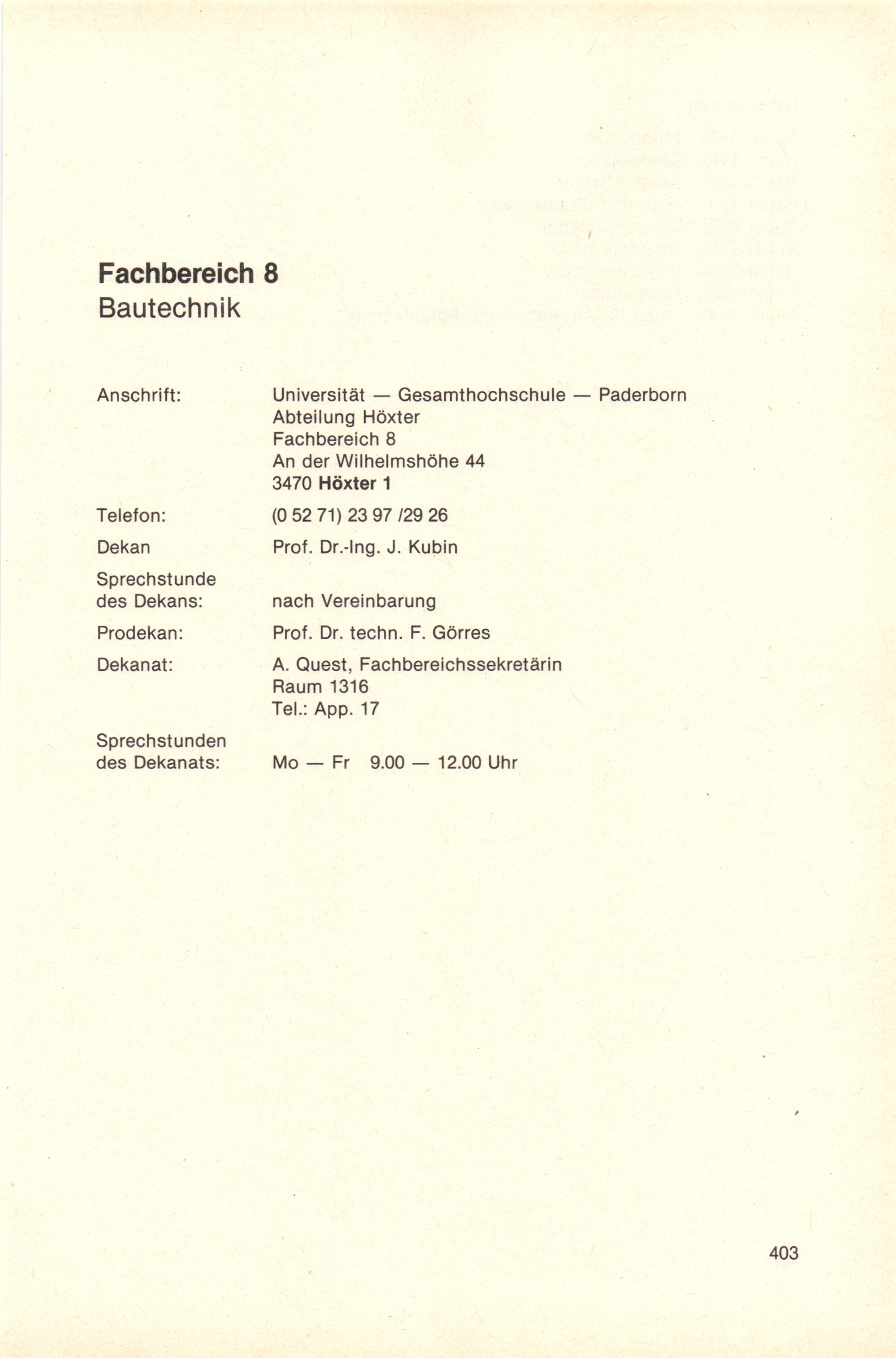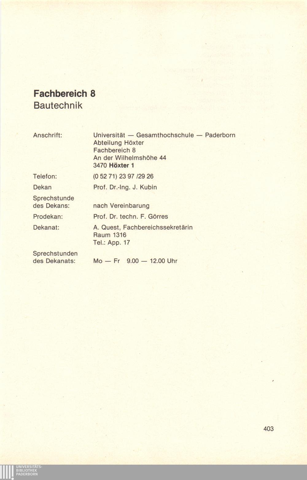 Personal- und Vorlesungsverzeichnis für die Universität Paderborn