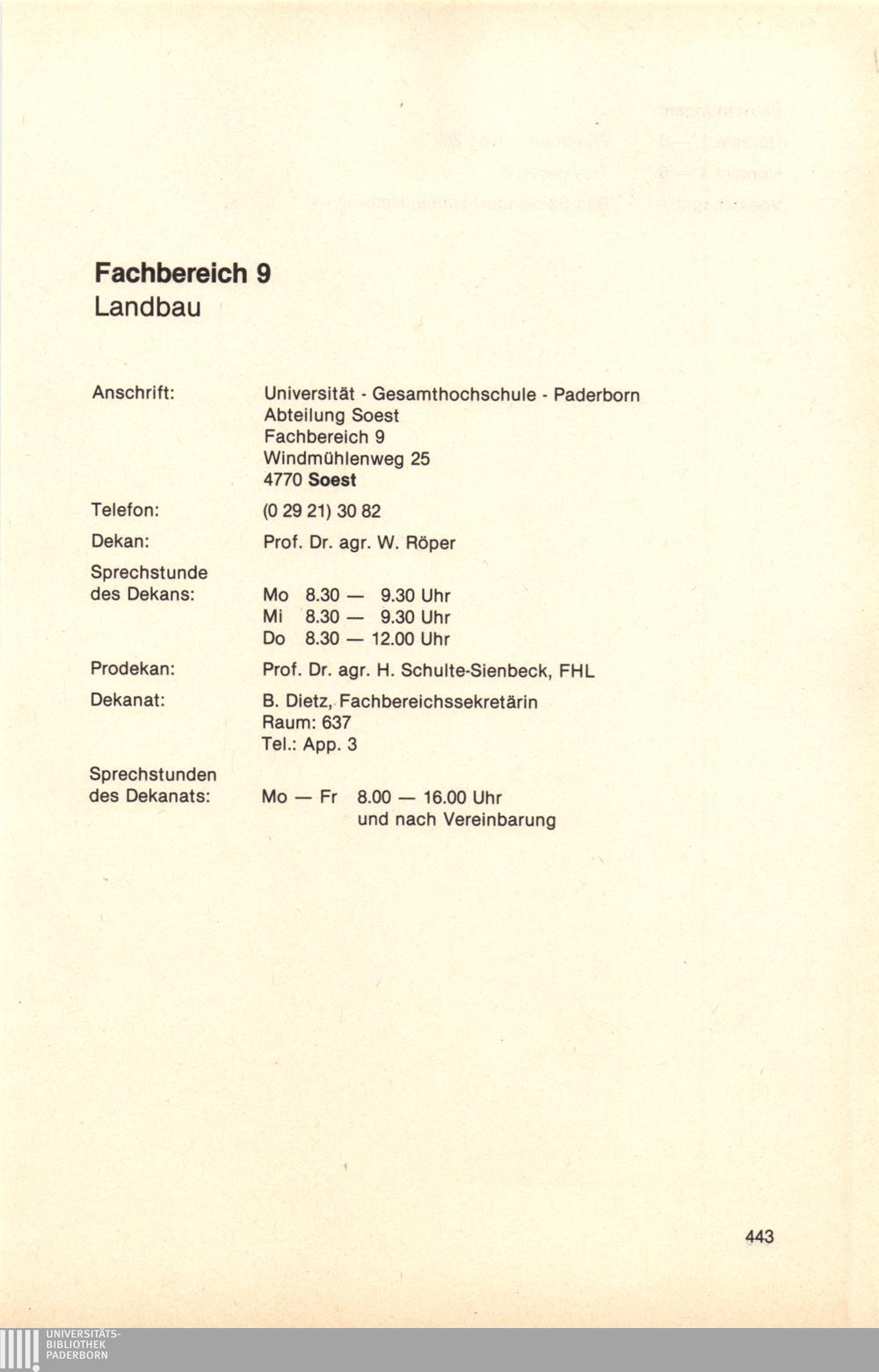 Personal- und Vorlesungsverzeichnis für die Universität Paderborn