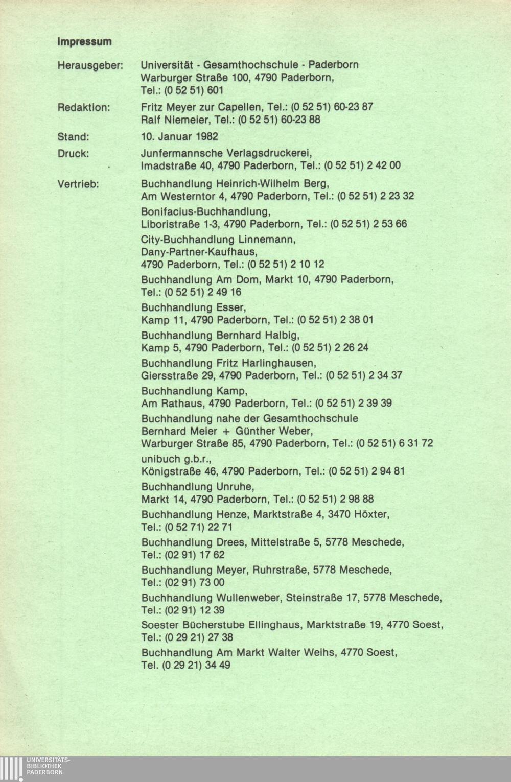 Personal- und Vorlesungsverzeichnis für die Universität Paderborn