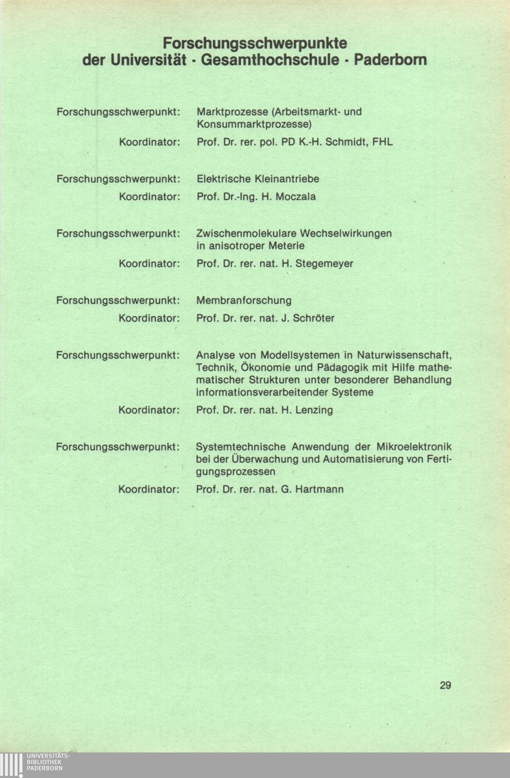 Personal- und Vorlesungsverzeichnis für die Universität Paderborn