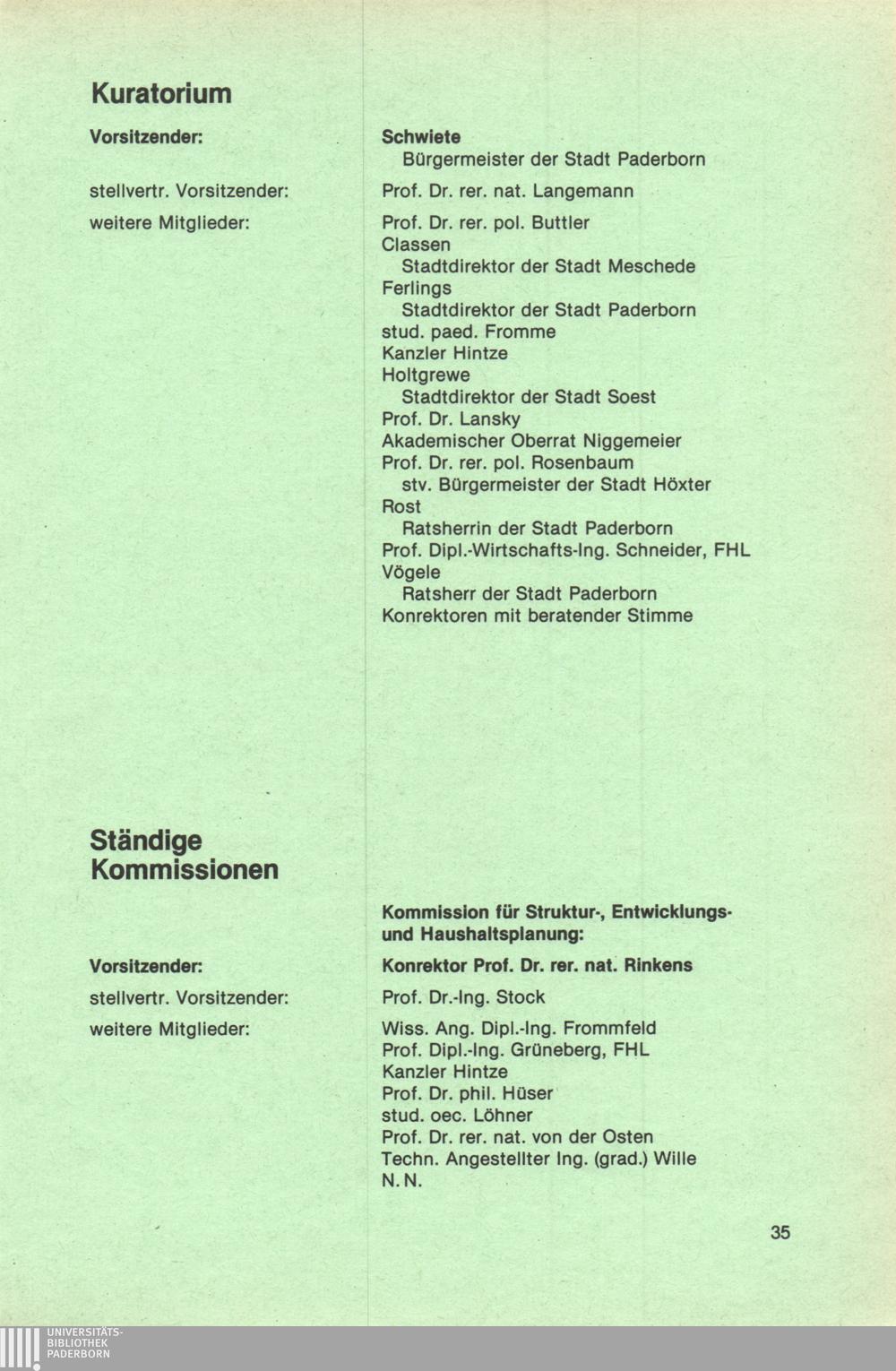 Personal- und Vorlesungsverzeichnis für die Universität Paderborn