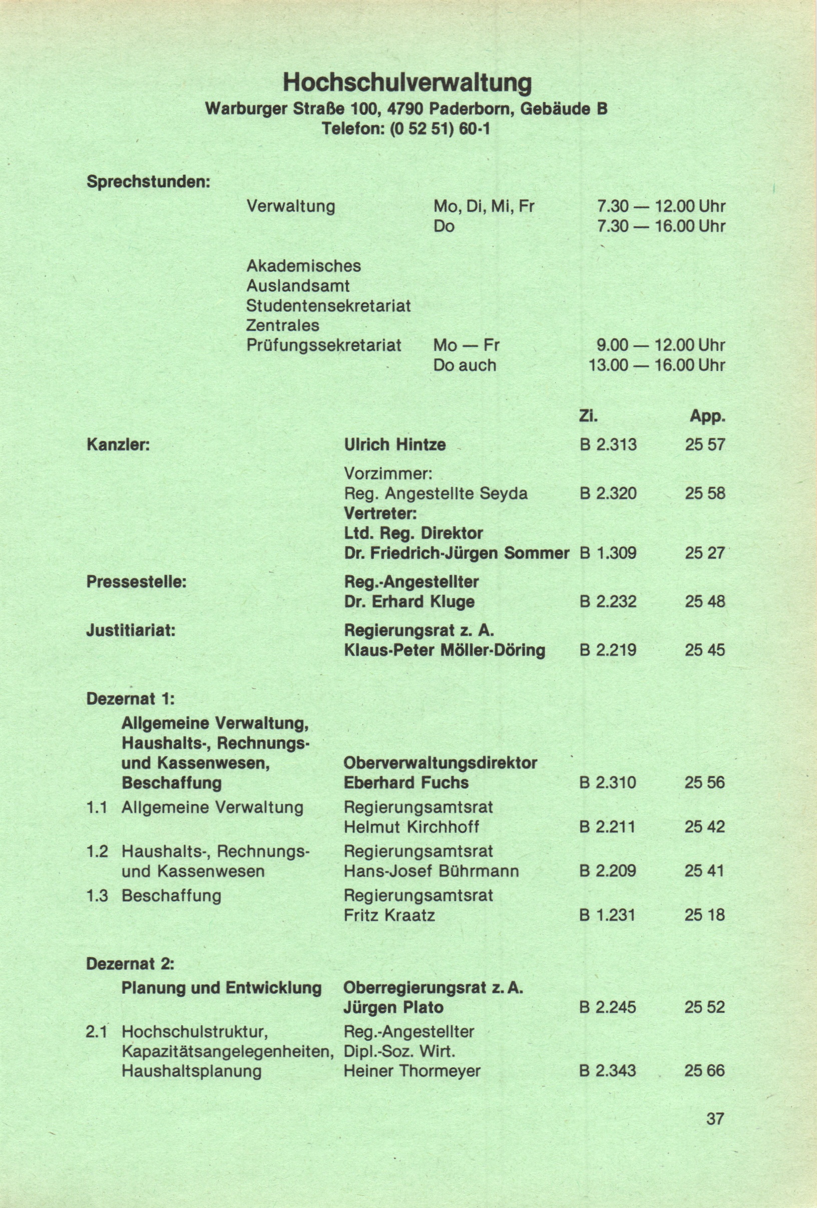 Personal- und Vorlesungsverzeichnis für die Universität Paderborn