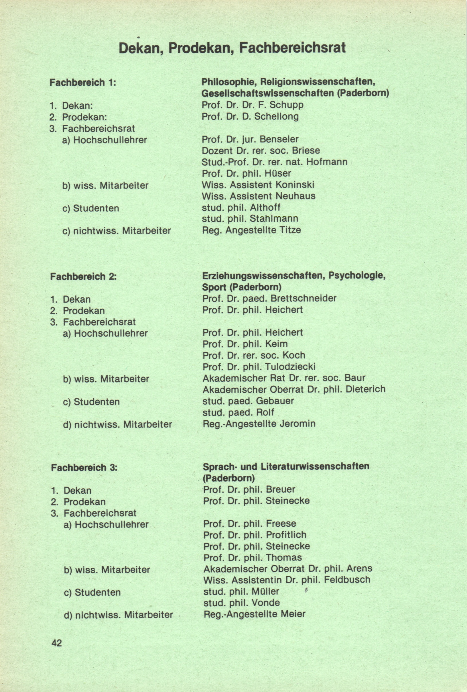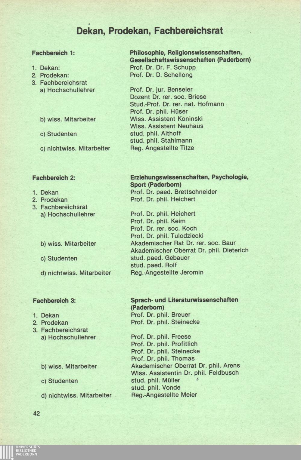 Dekan, Prodekan, Fachbereichsrat, Abteilungsleiter