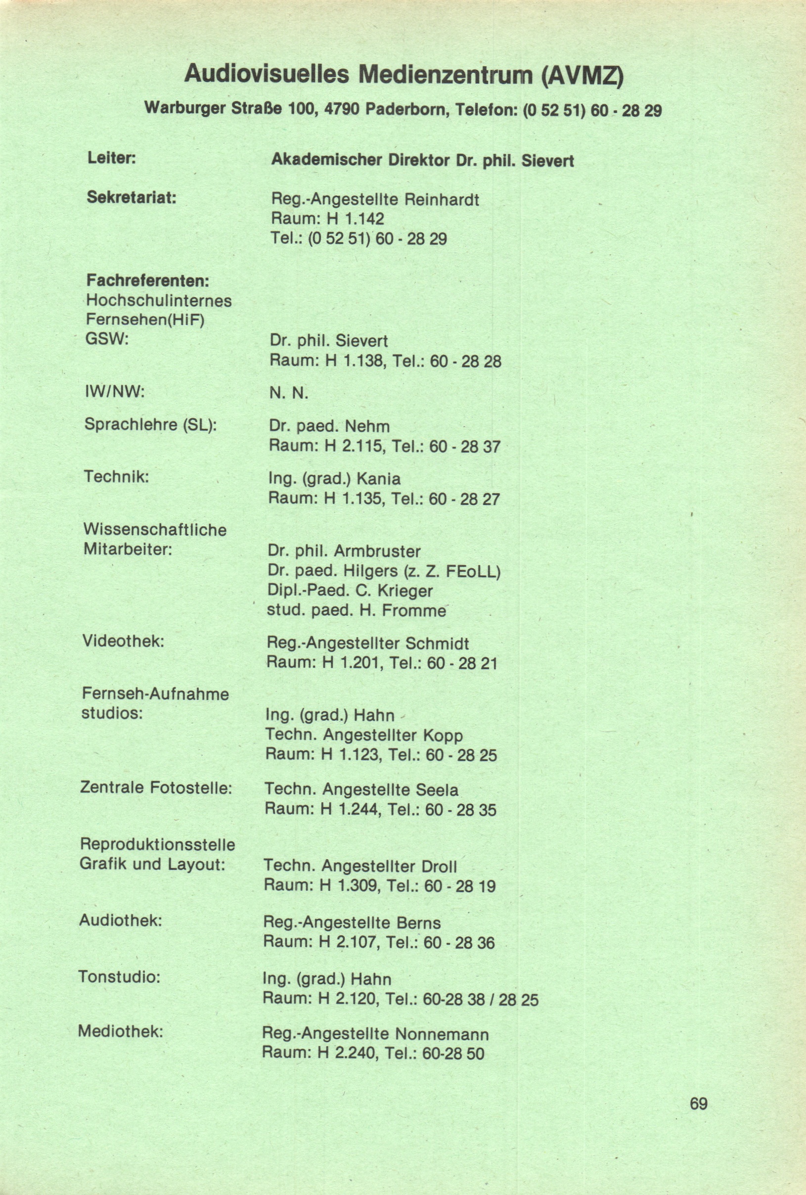 Personal- und Vorlesungsverzeichnis für die Universität Paderborn