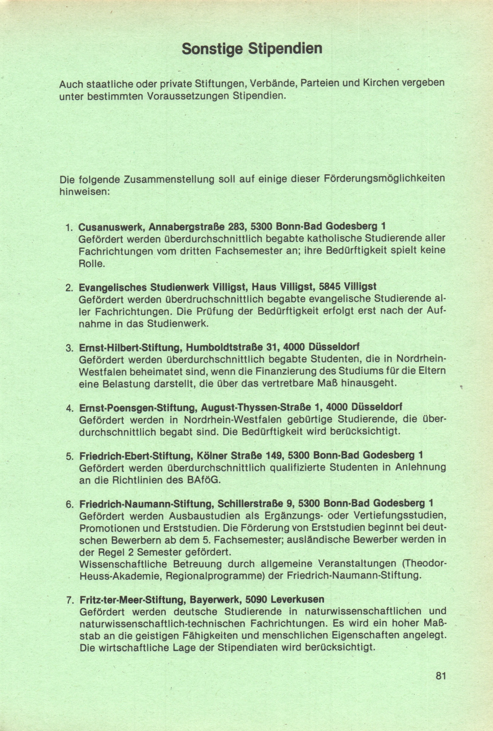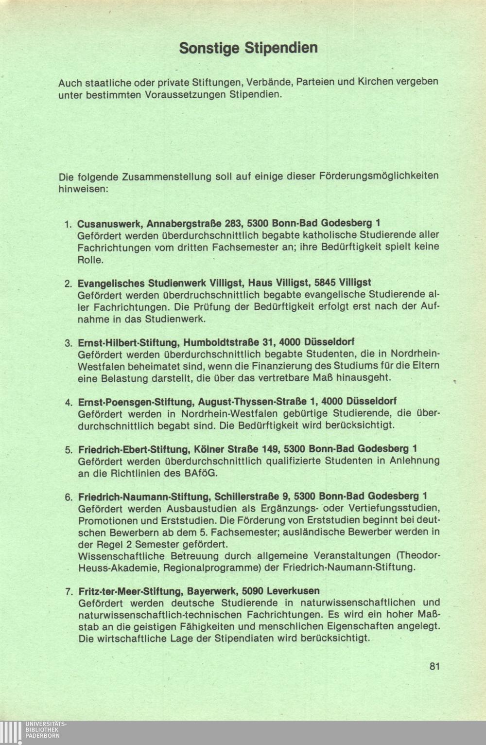 Sonstige Stipendien