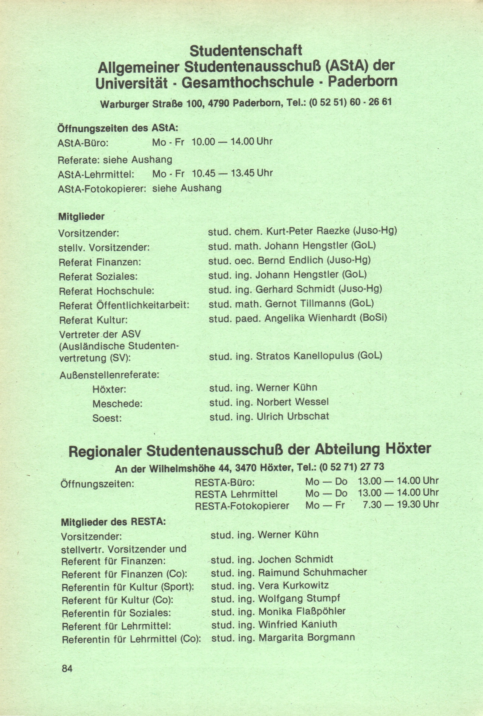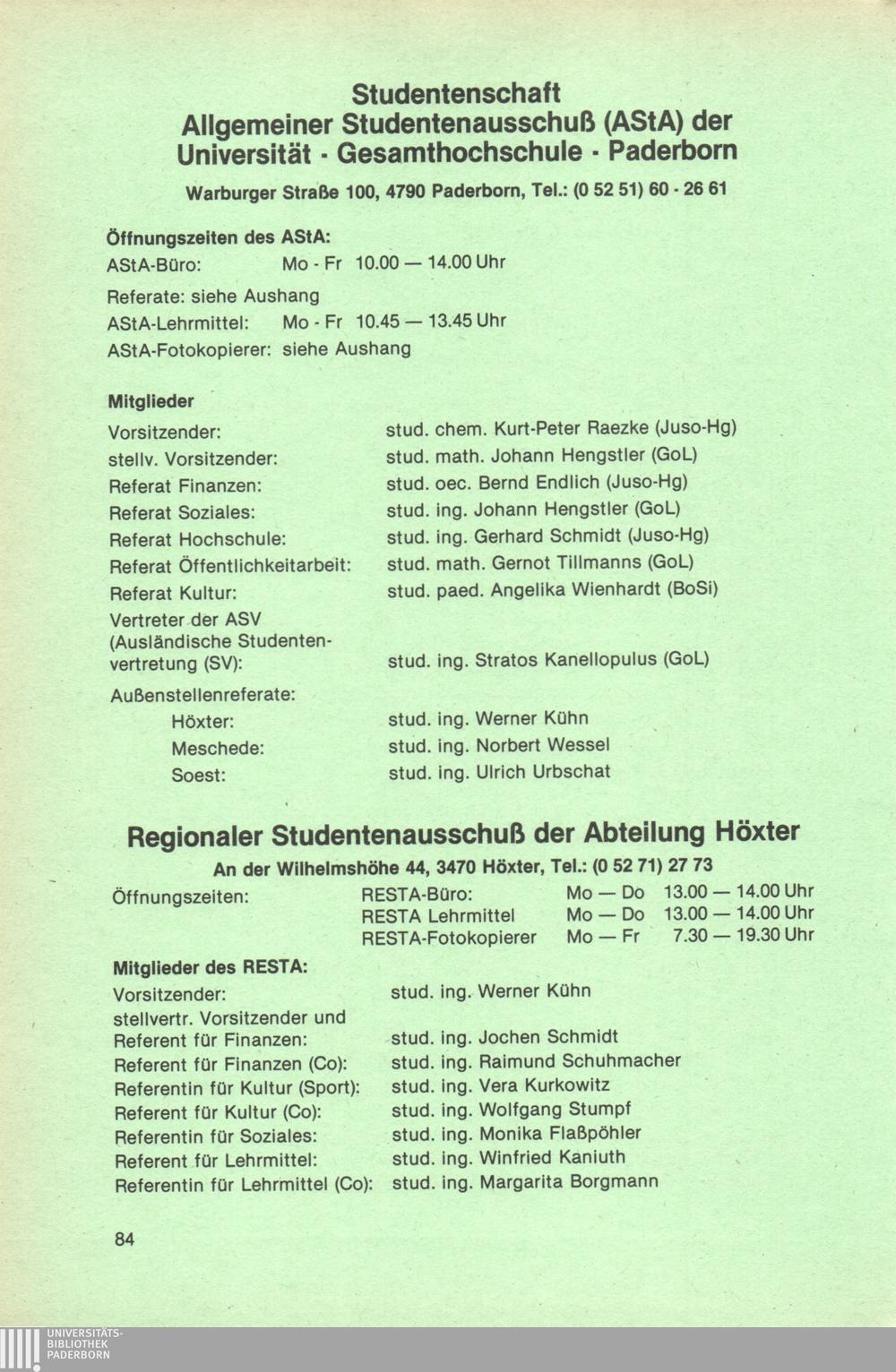Personal- und Vorlesungsverzeichnis für die Universität Paderborn