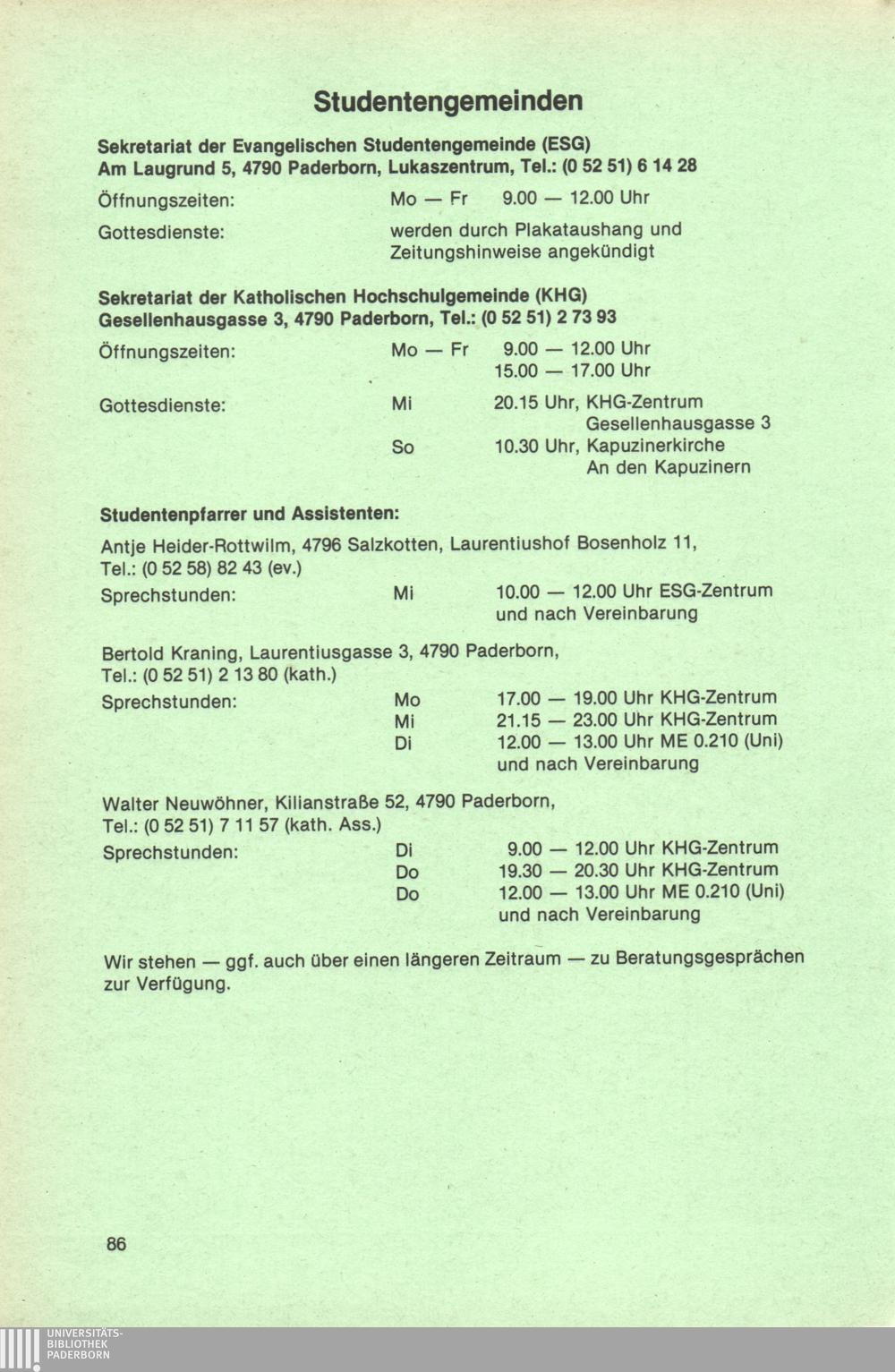 Personal- und Vorlesungsverzeichnis für die Universität Paderborn