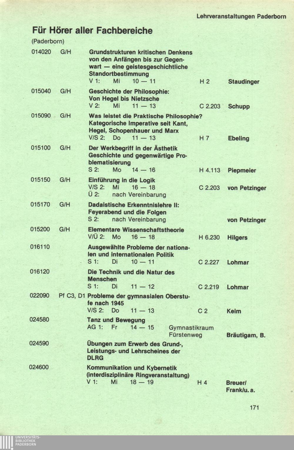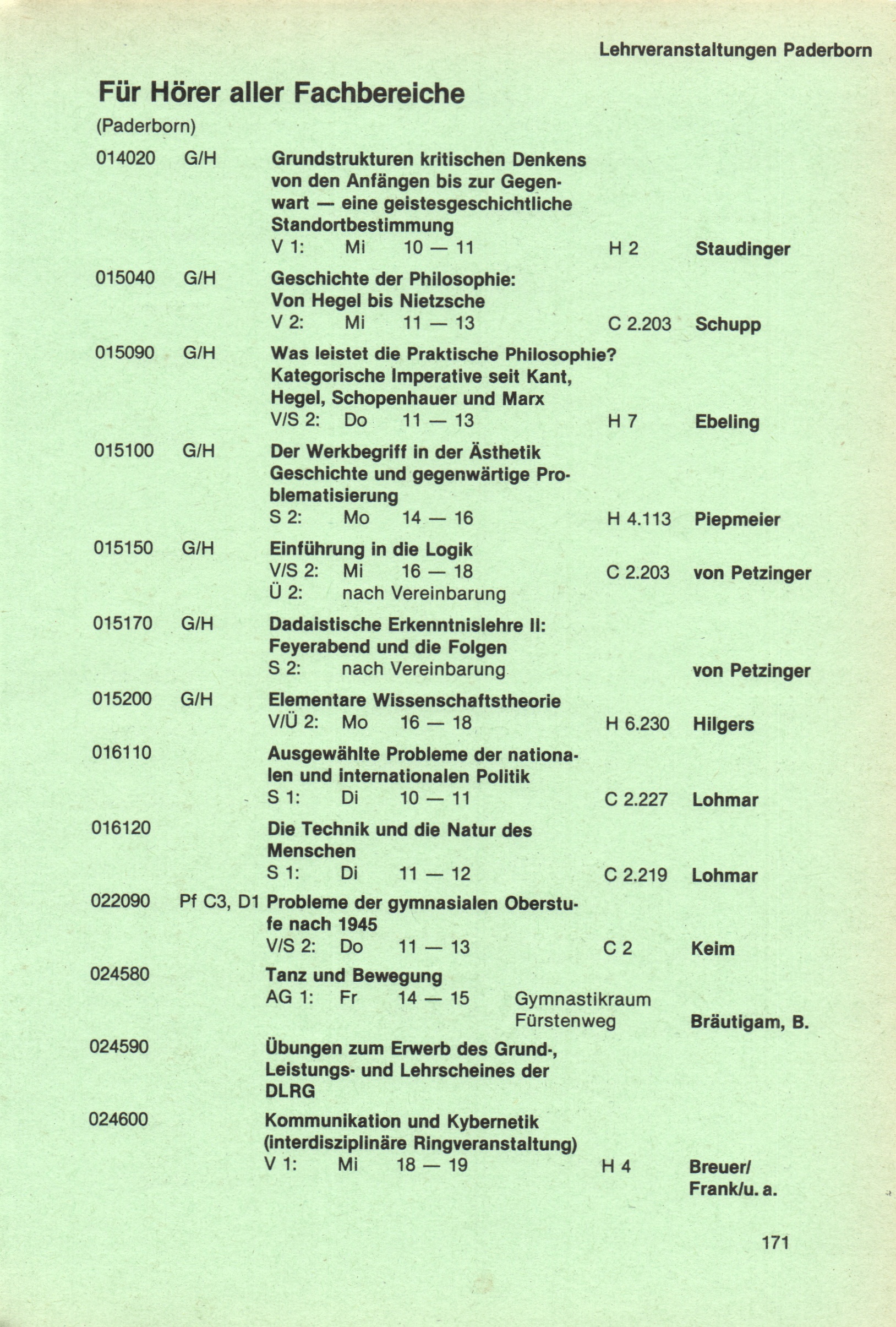 Personal- und Vorlesungsverzeichnis für die Universität Paderborn