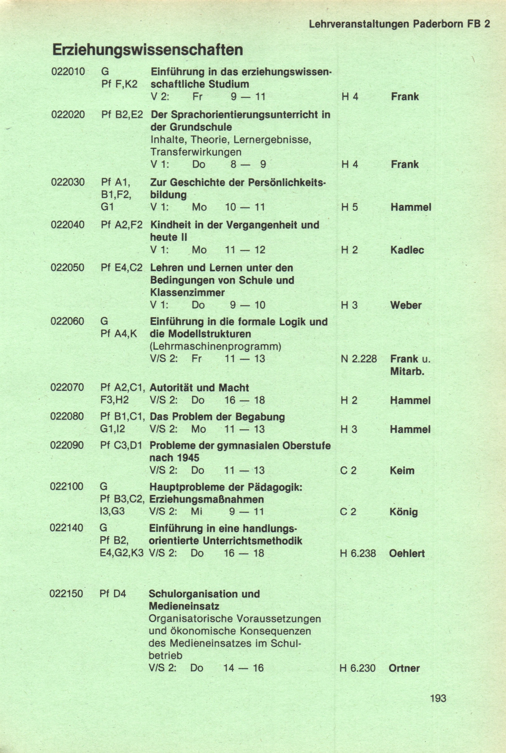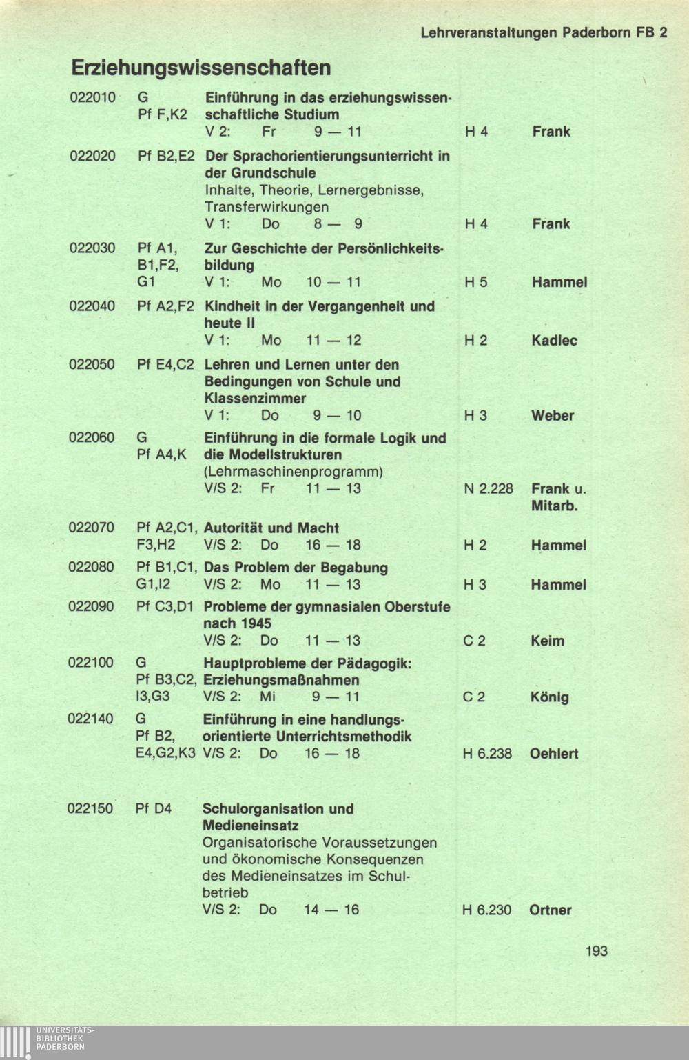 Personal- und Vorlesungsverzeichnis für die Universität Paderborn