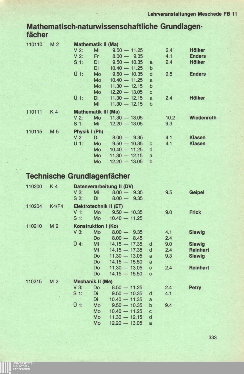 Personal- und Vorlesungsverzeichnis für die Universität Paderborn