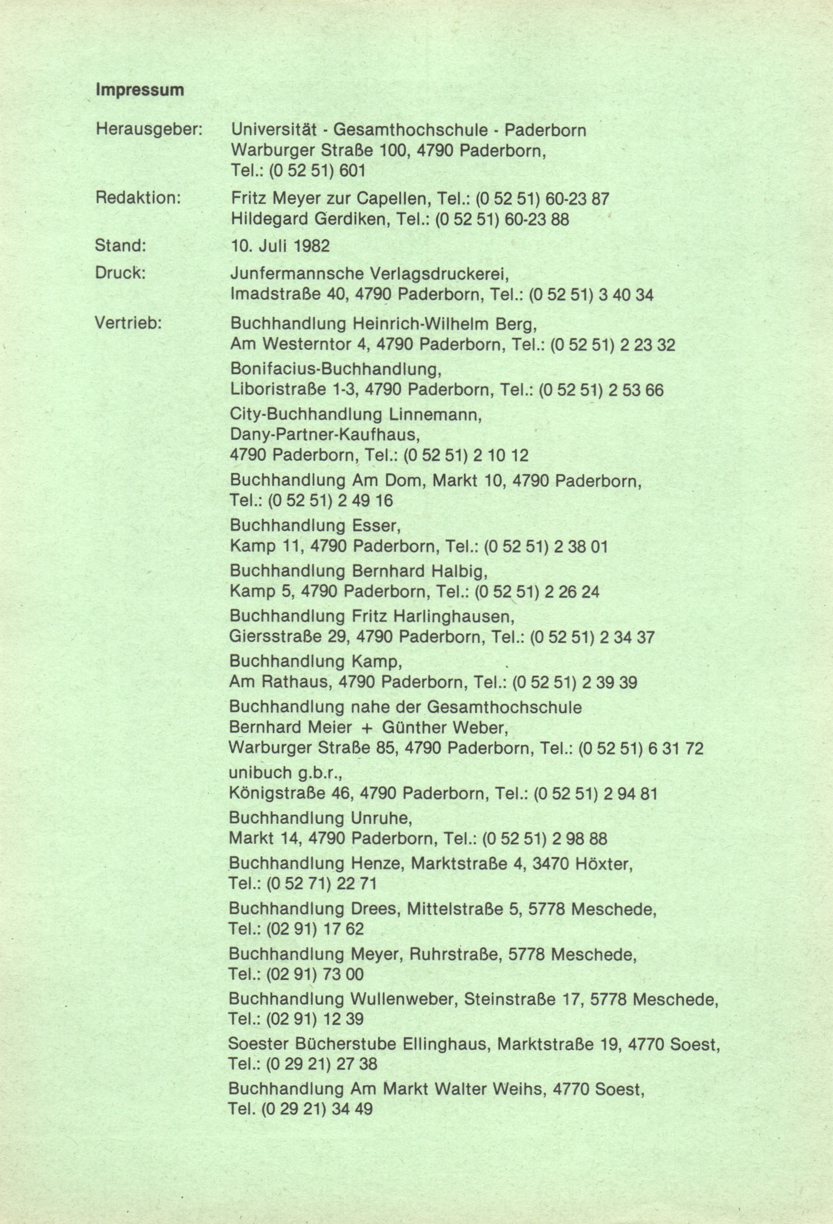 Personal- und Vorlesungsverzeichnis für die Universität Paderborn