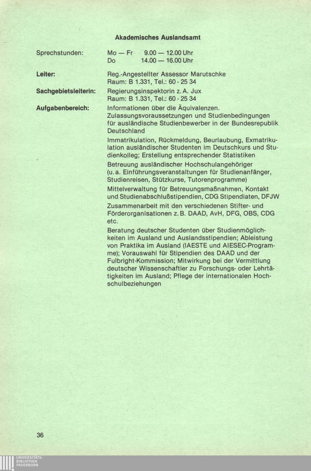 Personal- und Vorlesungsverzeichnis für die Universität Paderborn