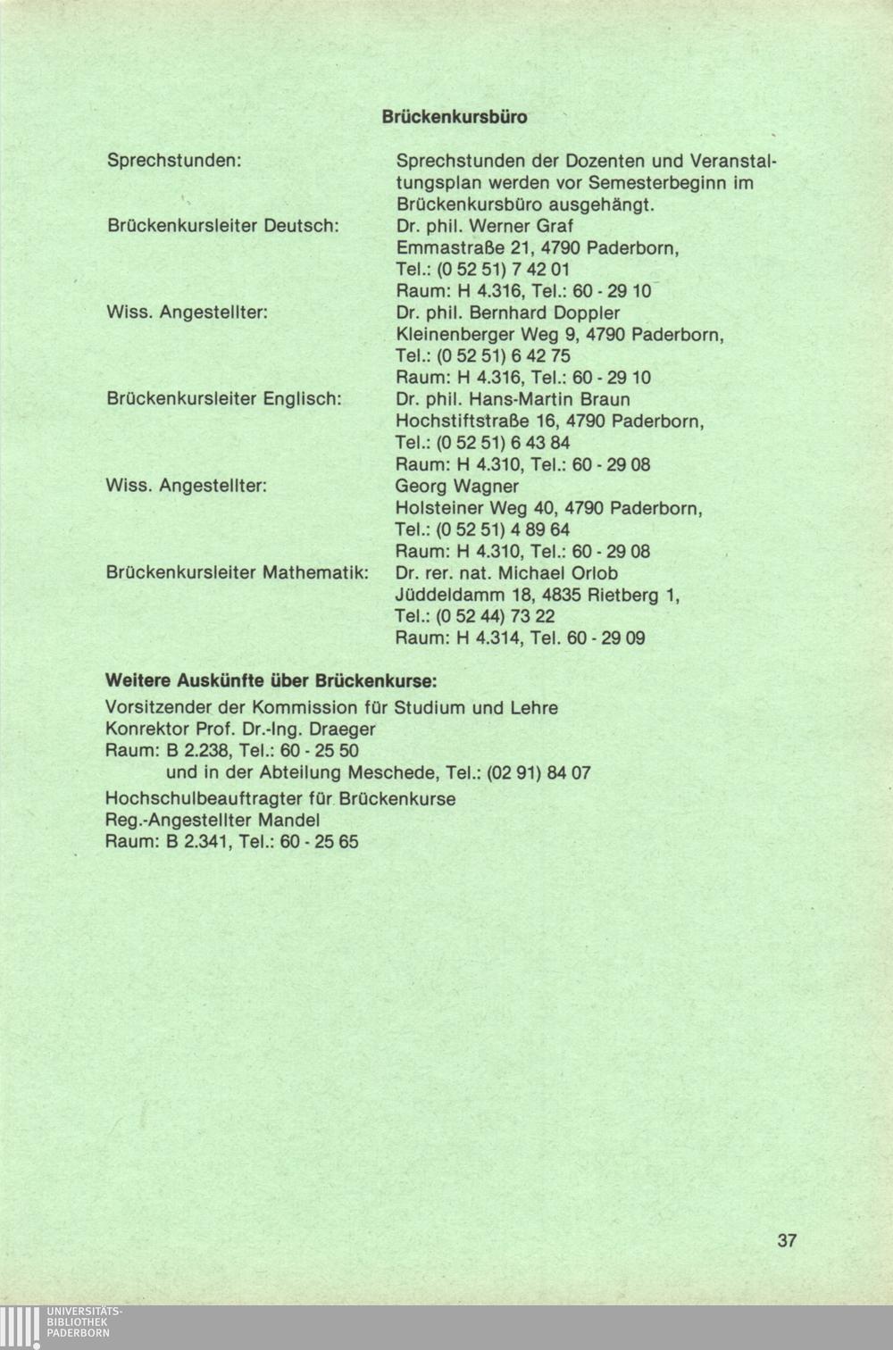 Personal- und Vorlesungsverzeichnis für die Universität Paderborn