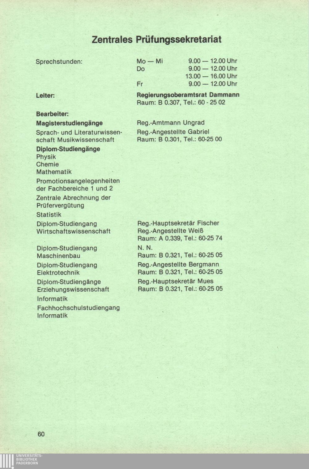 Personal- und Vorlesungsverzeichnis für die Universität Paderborn