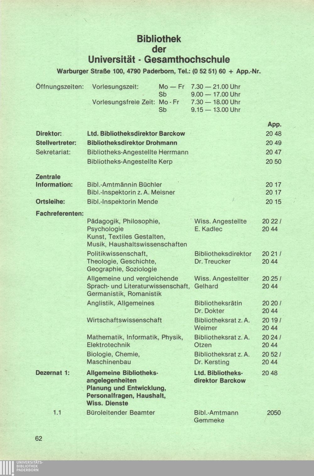 Bibliothek der Universität - Gesamthochschule - Paderborn