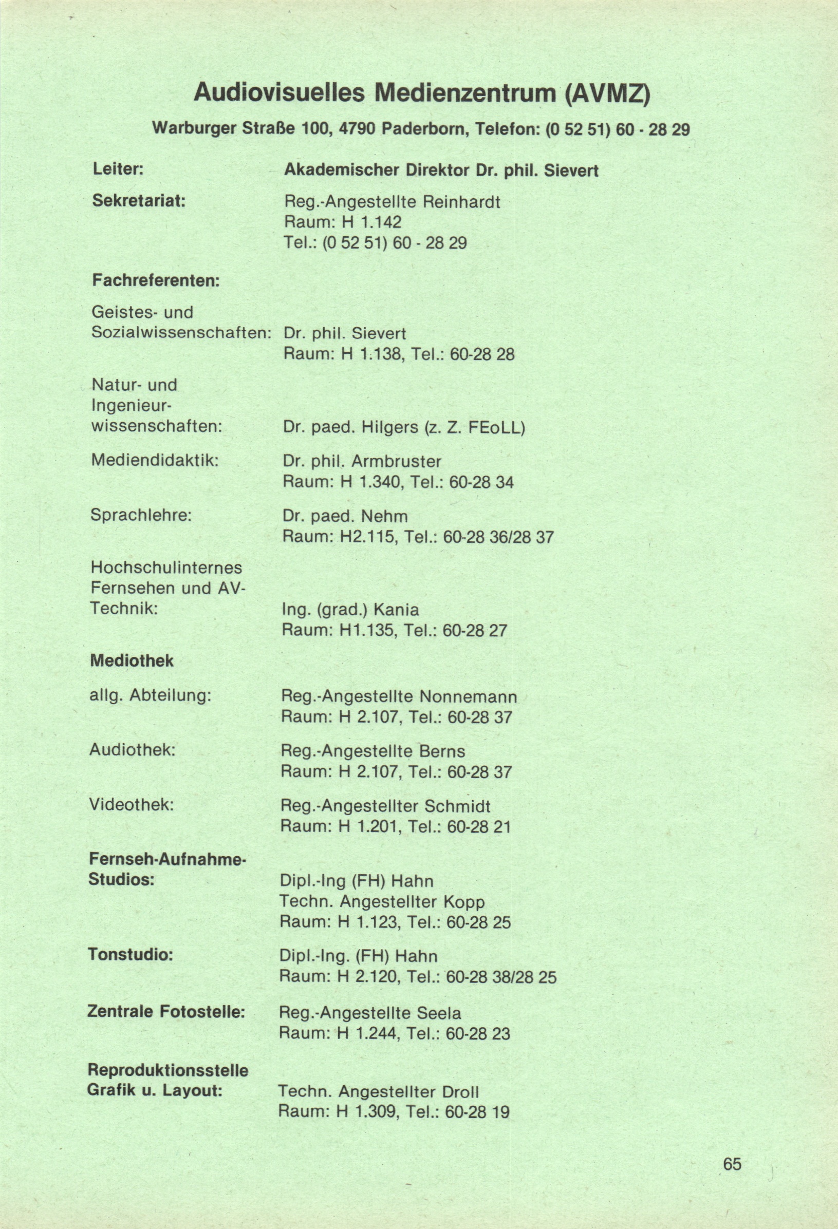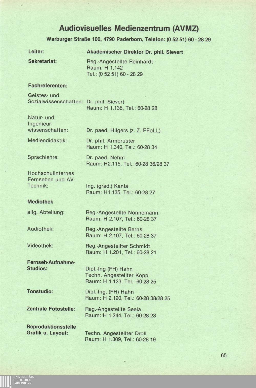 Personal- und Vorlesungsverzeichnis für die Universität Paderborn