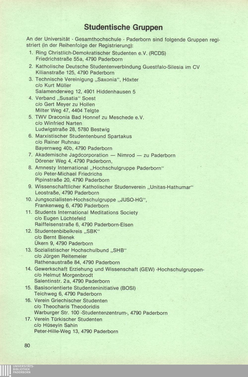 Personal- und Vorlesungsverzeichnis für die Universität Paderborn