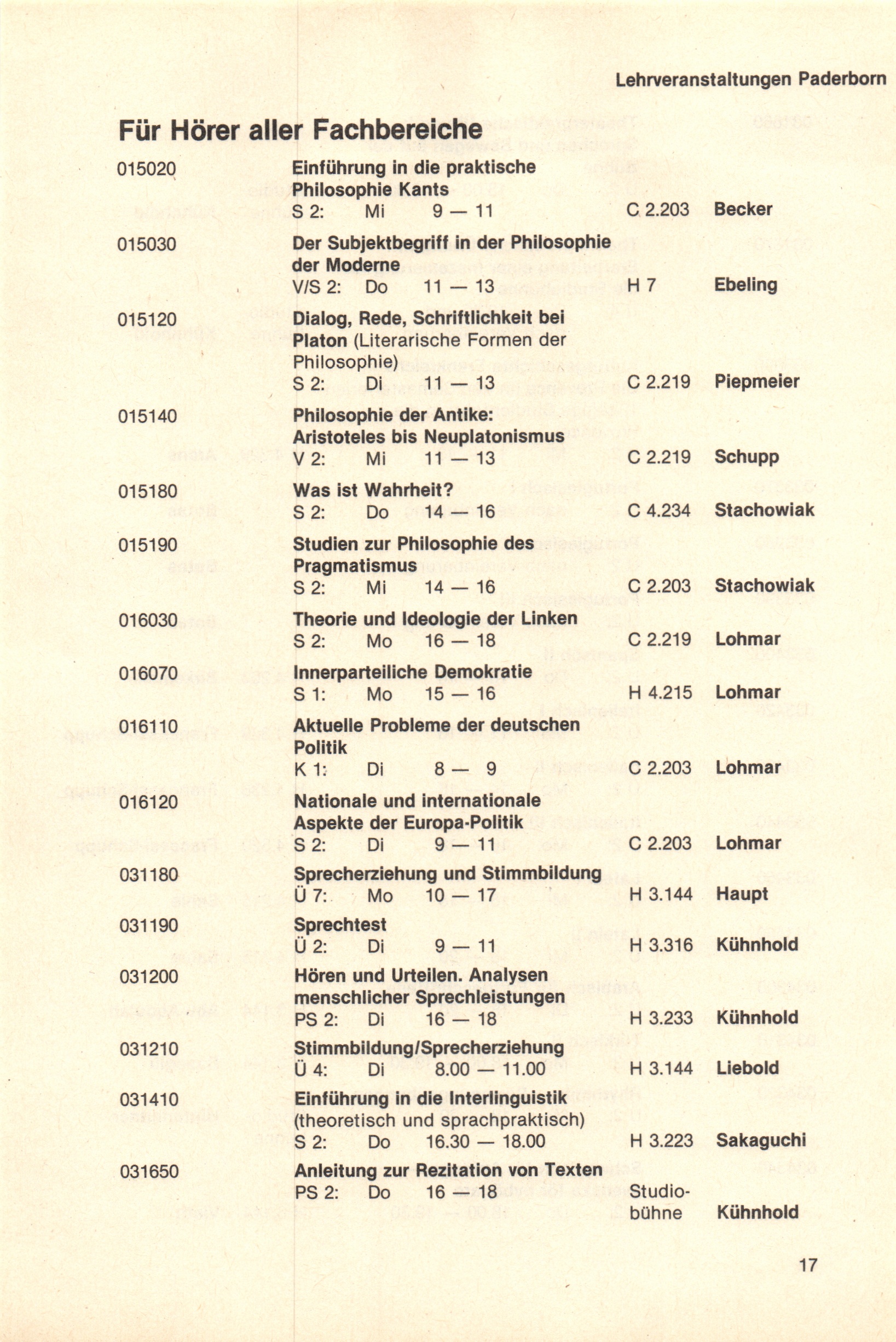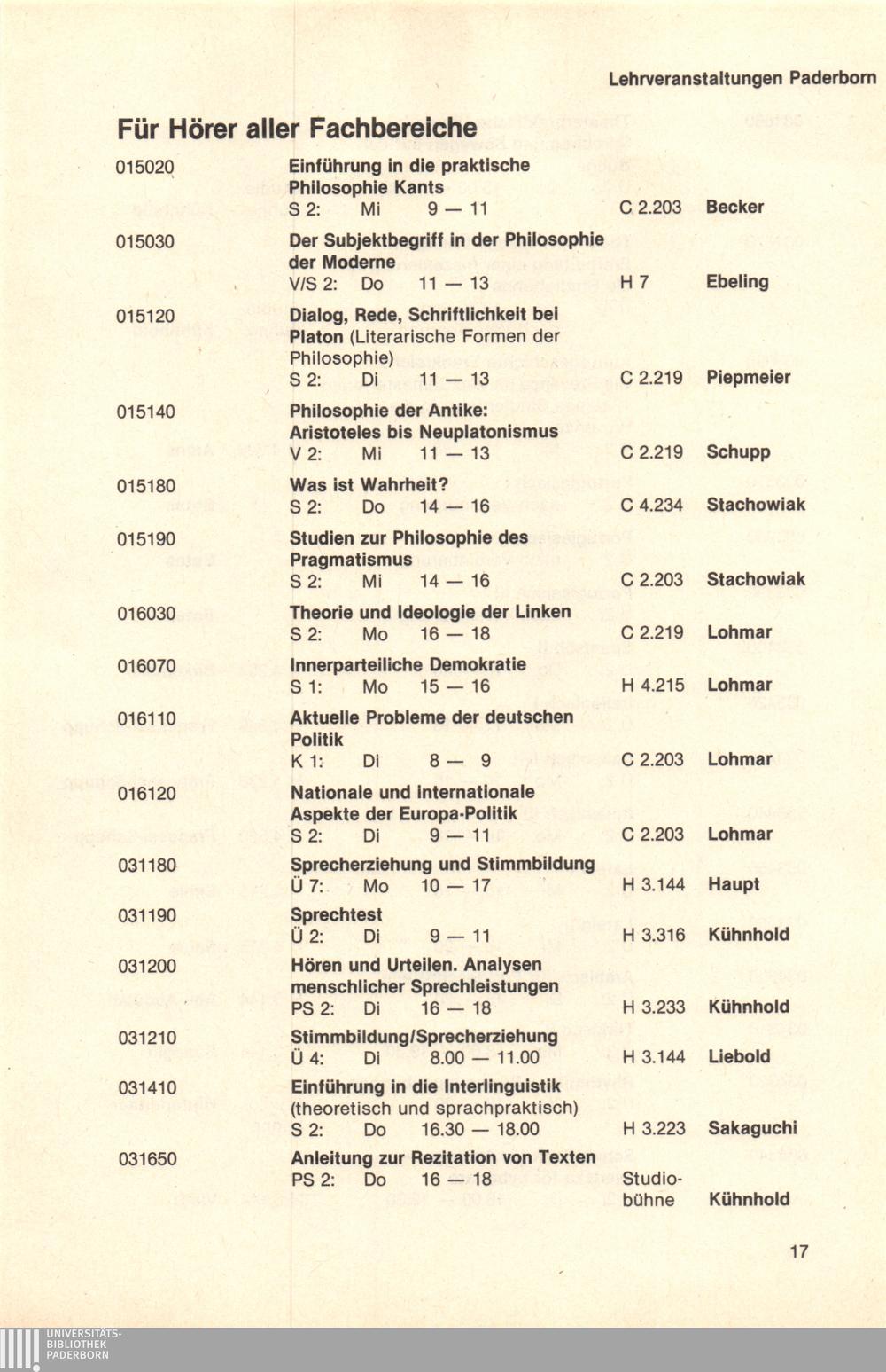 Personal- und Vorlesungsverzeichnis für die Universität Paderborn
