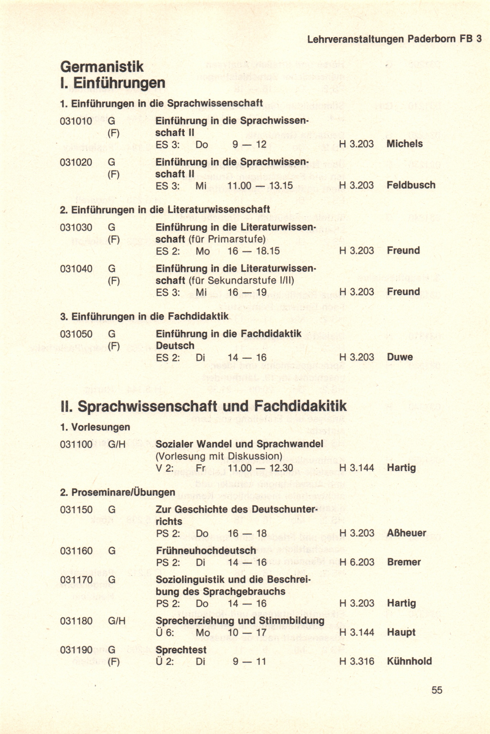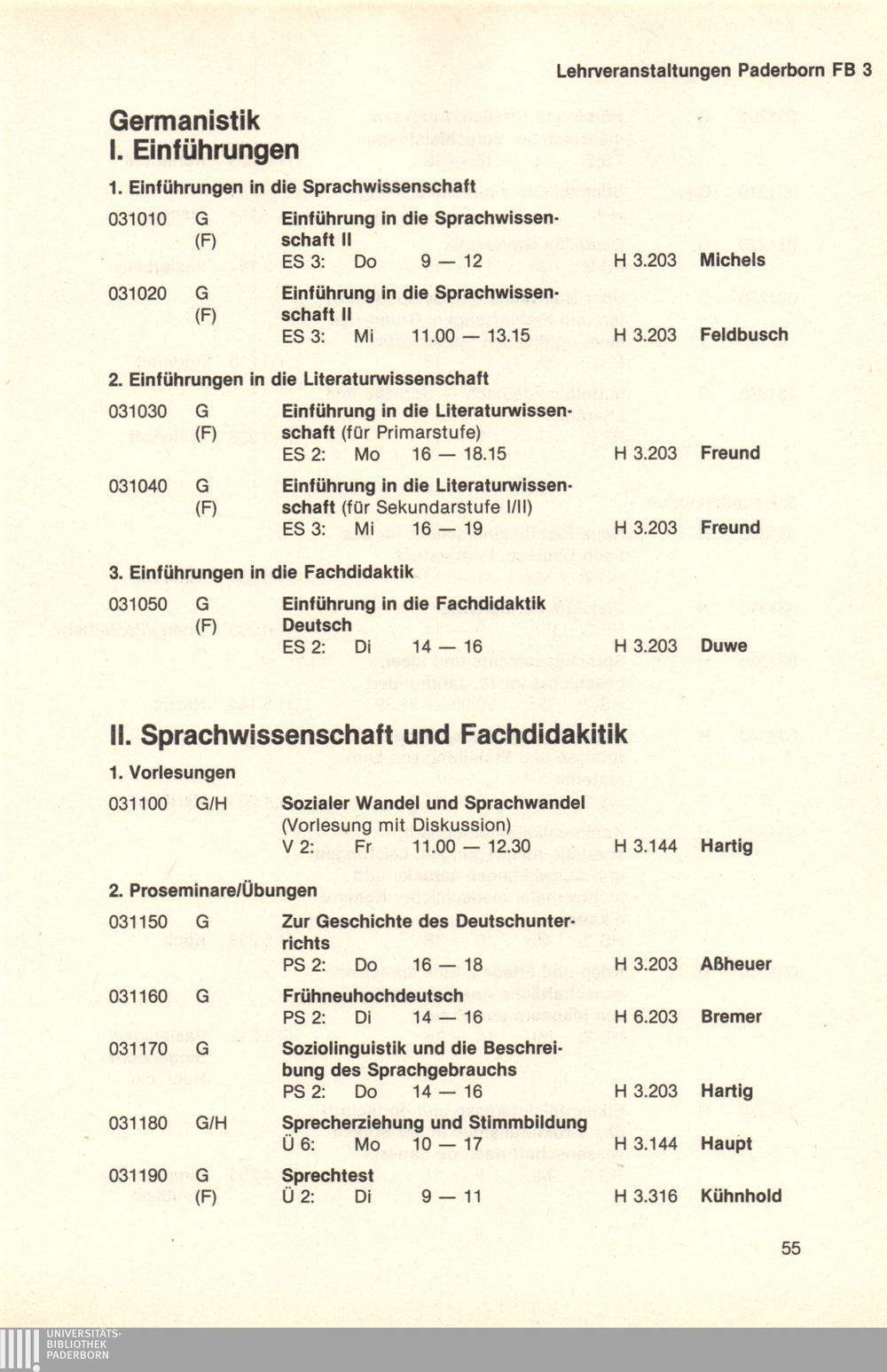 Personal- und Vorlesungsverzeichnis für die Universität Paderborn