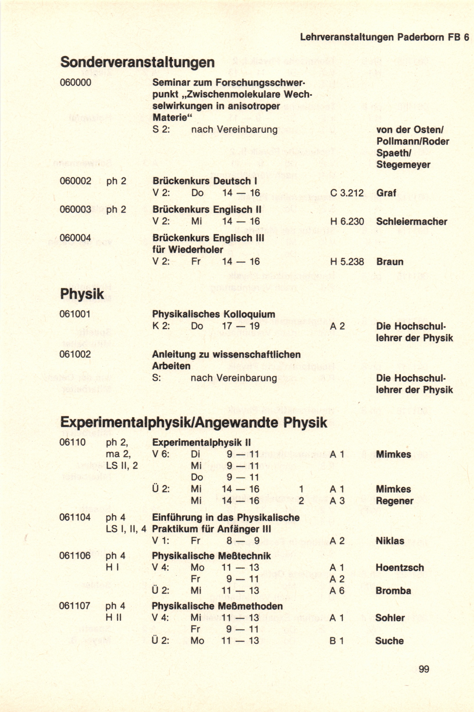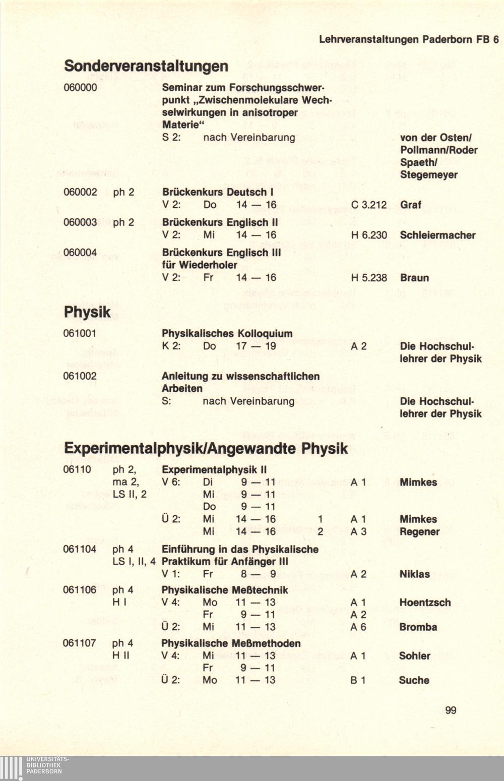 Personal- und Vorlesungsverzeichnis für die Universität Paderborn