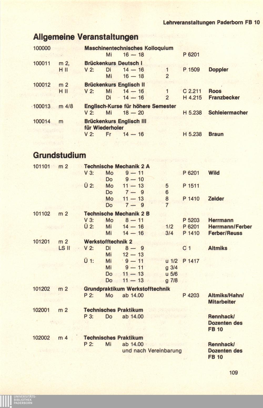 Personal- und Vorlesungsverzeichnis für die Universität Paderborn