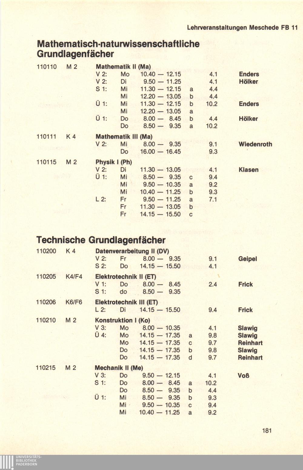 Personal- und Vorlesungsverzeichnis für die Universität Paderborn