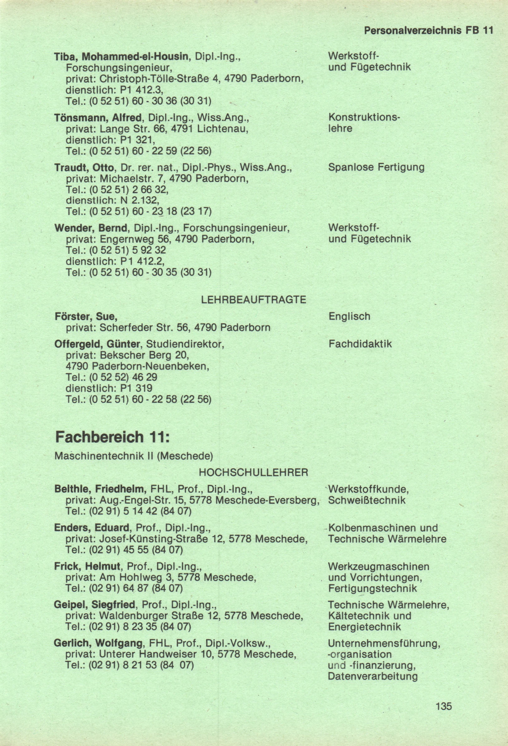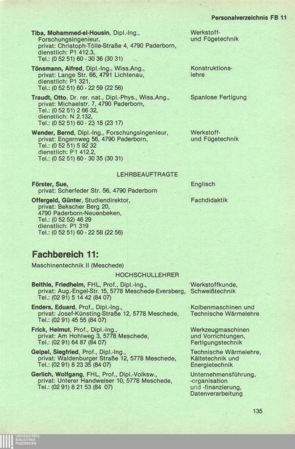 Personal- und Vorlesungsverzeichnis für die Universität Paderborn