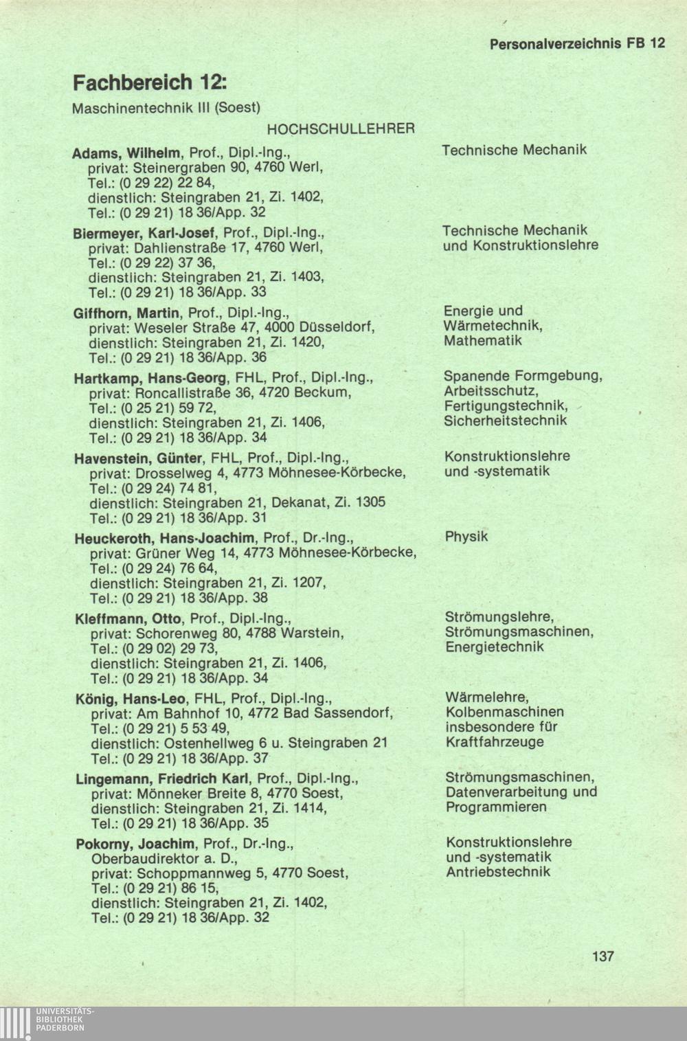 Personal- und Vorlesungsverzeichnis für die Universität Paderborn