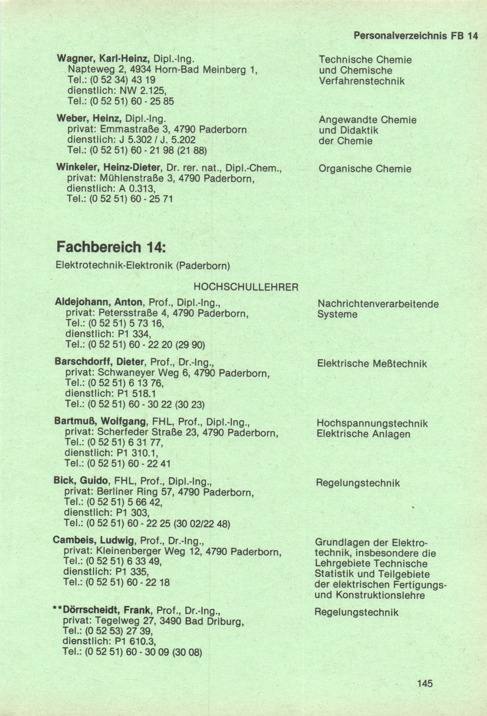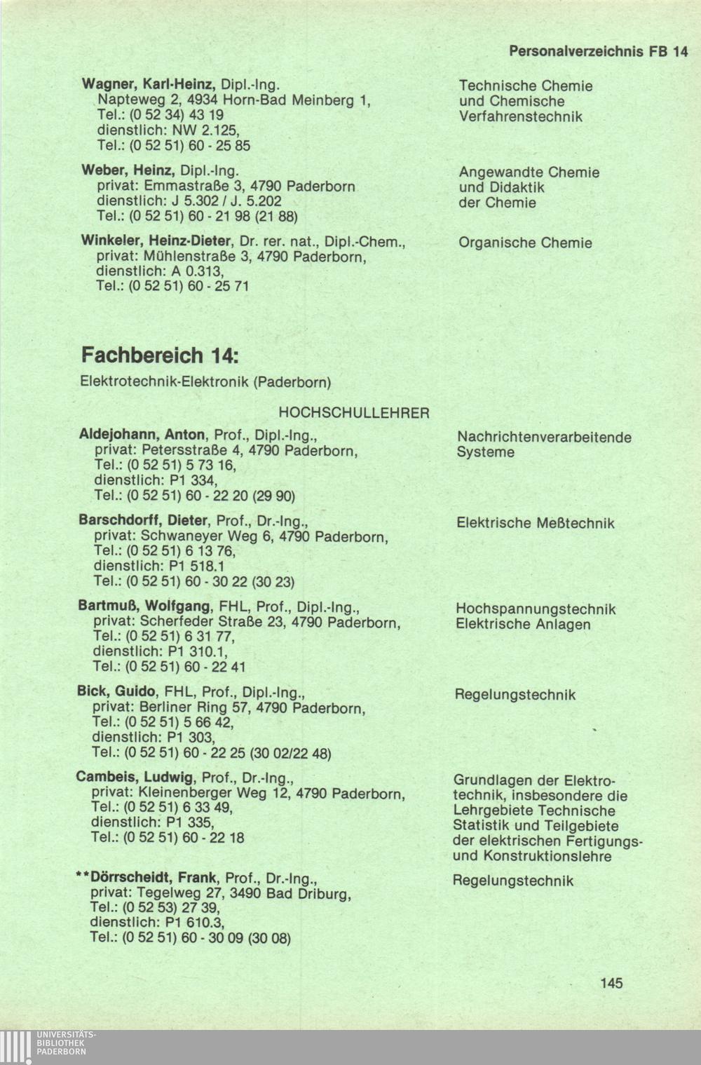 Fachbereich 14: Elektrotechnik - Elektronik (Paderborn)