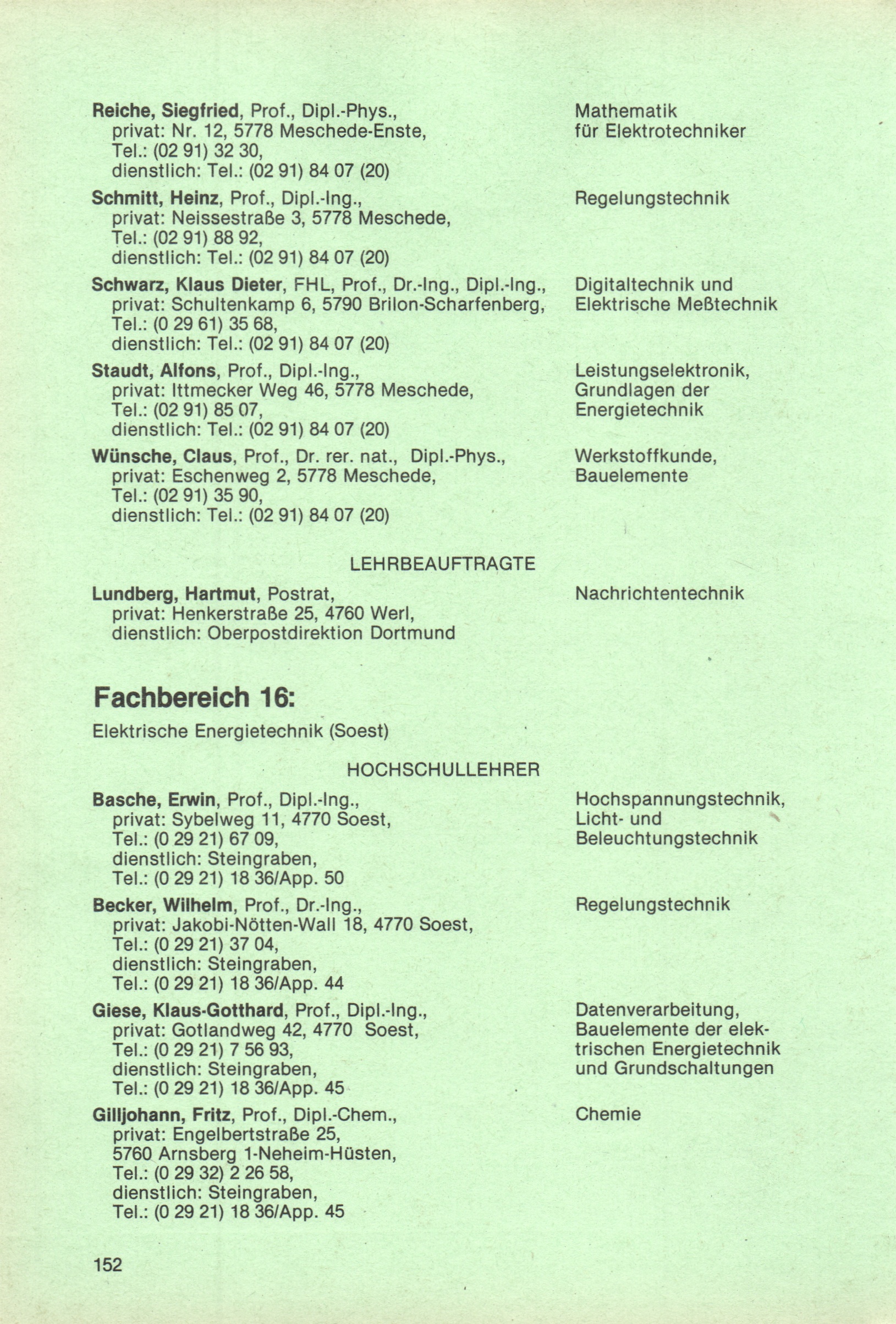 Fachbereich 16: Elektrische Energietechnik (Soest)