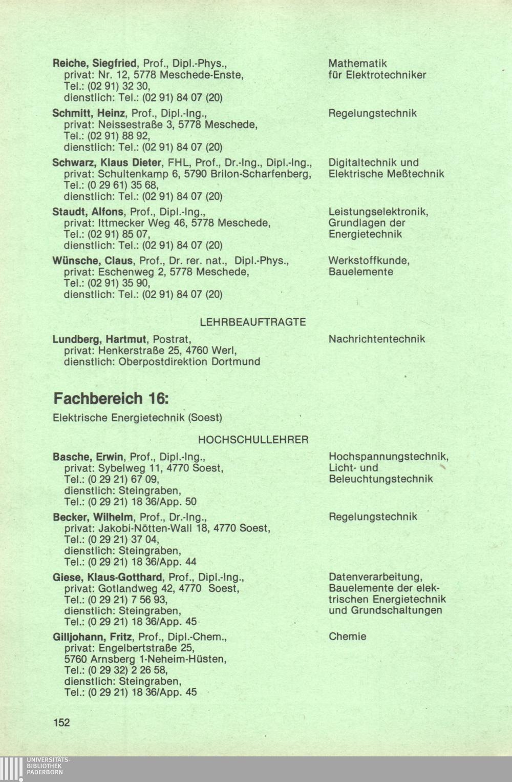 Personal- und Vorlesungsverzeichnis für die Universität Paderborn