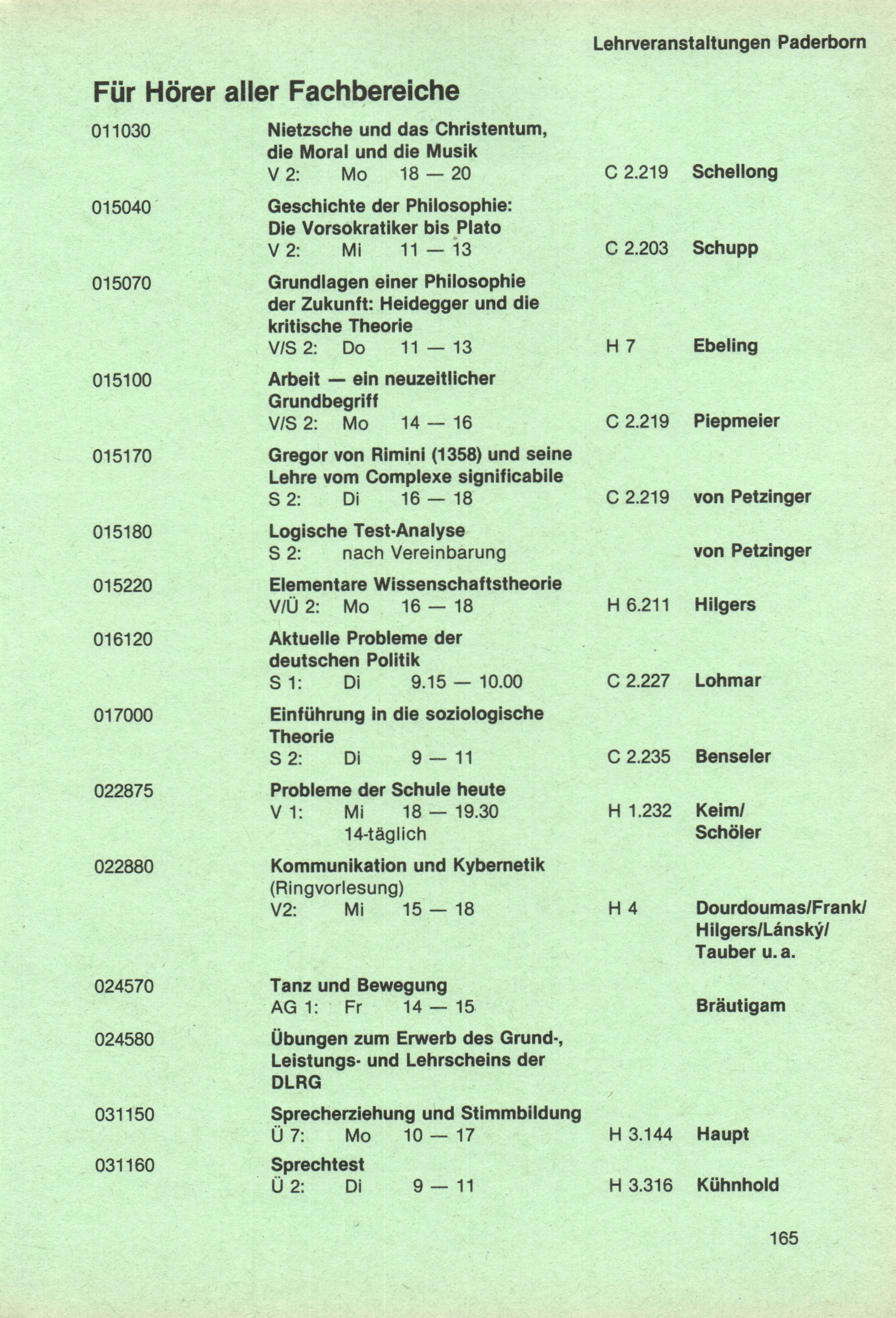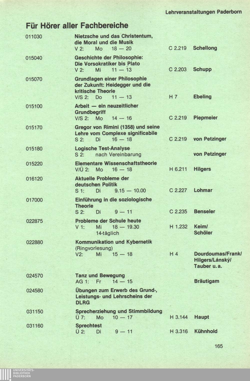 Personal- und Vorlesungsverzeichnis für die Universität Paderborn