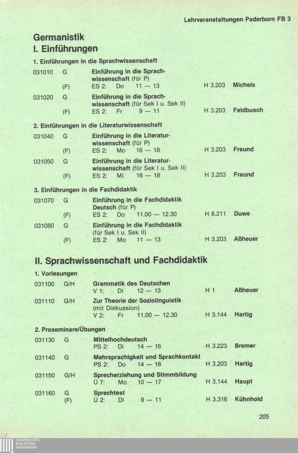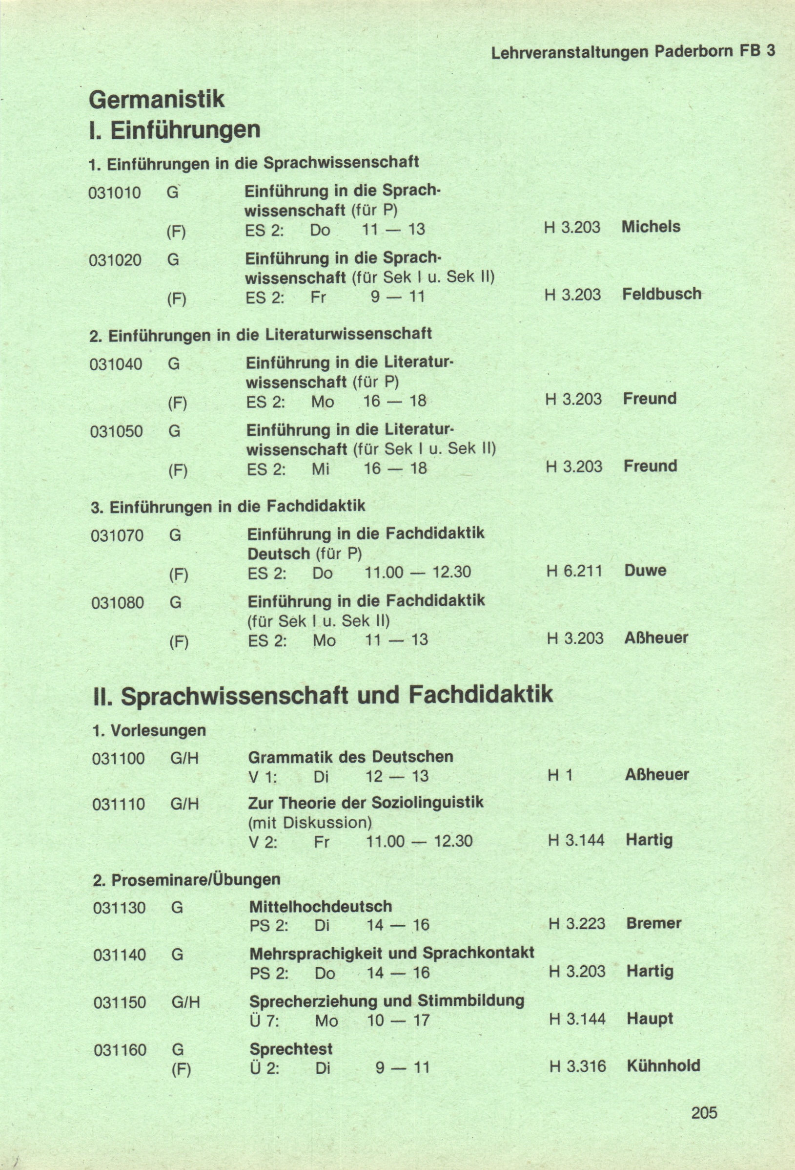 Personal- und Vorlesungsverzeichnis für die Universität Paderborn