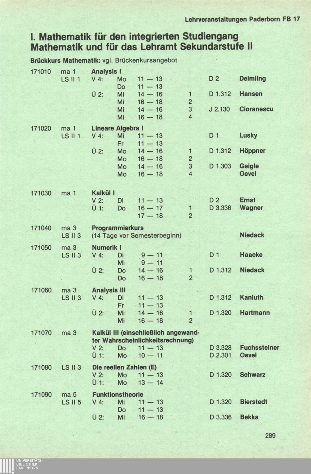 Personal- und Vorlesungsverzeichnis für die Universität Paderborn
