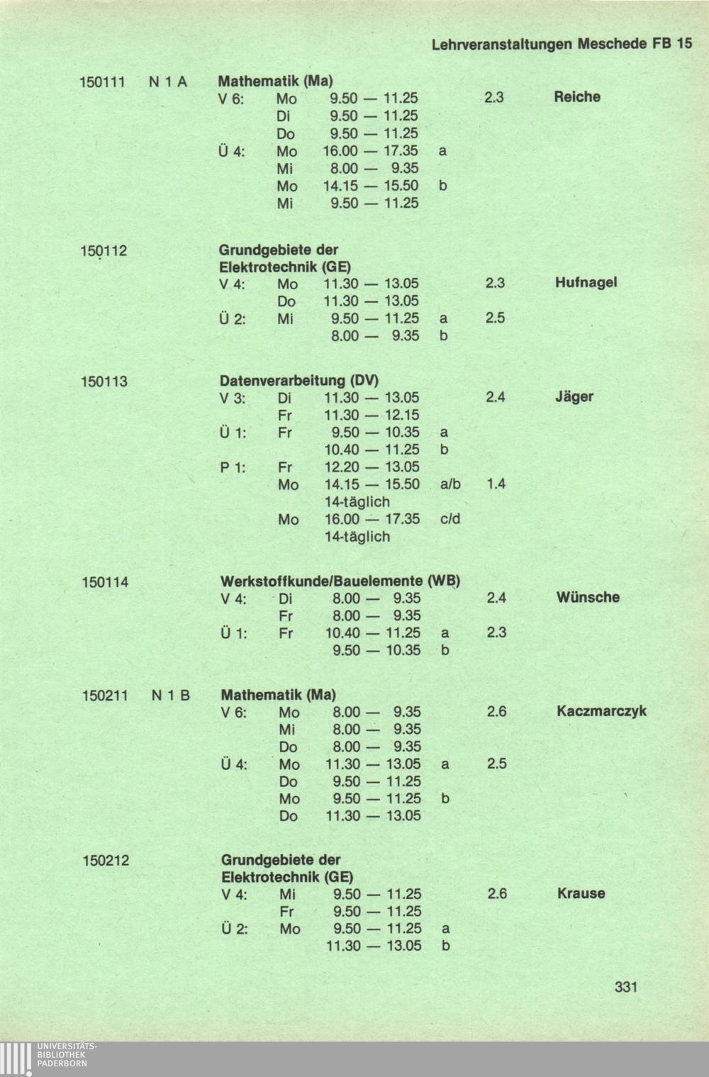 Personal- und Vorlesungsverzeichnis für die Universität Paderborn
