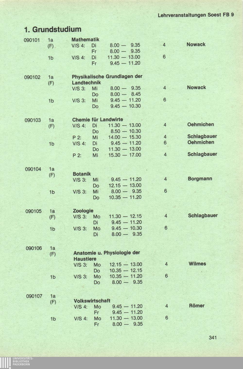 Personal- und Vorlesungsverzeichnis für die Universität Paderborn