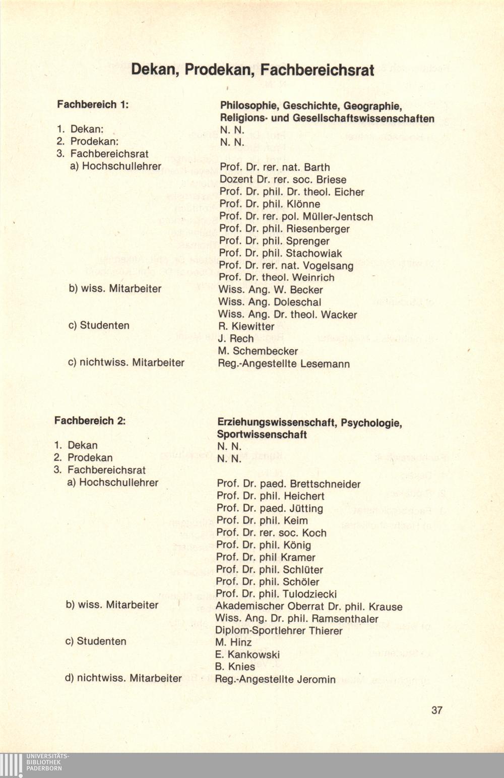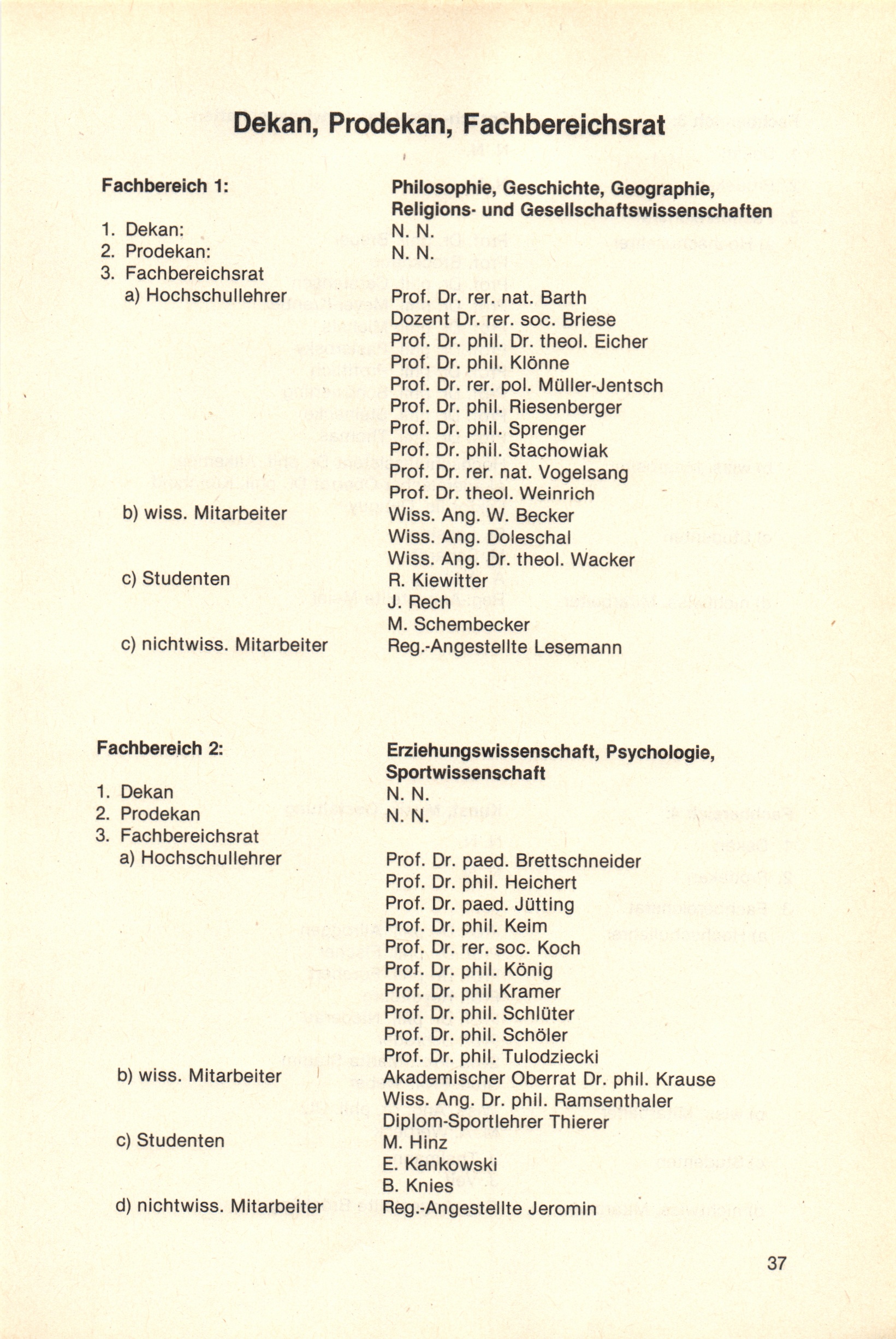 Dekan, Prodekan, Fachbereichsrat, Abteilungsleiter