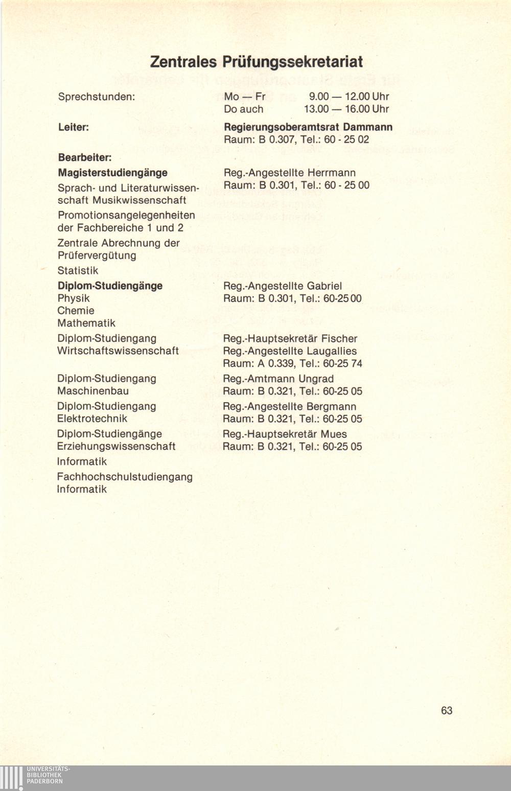 Personal- und Vorlesungsverzeichnis für die Universität Paderborn
